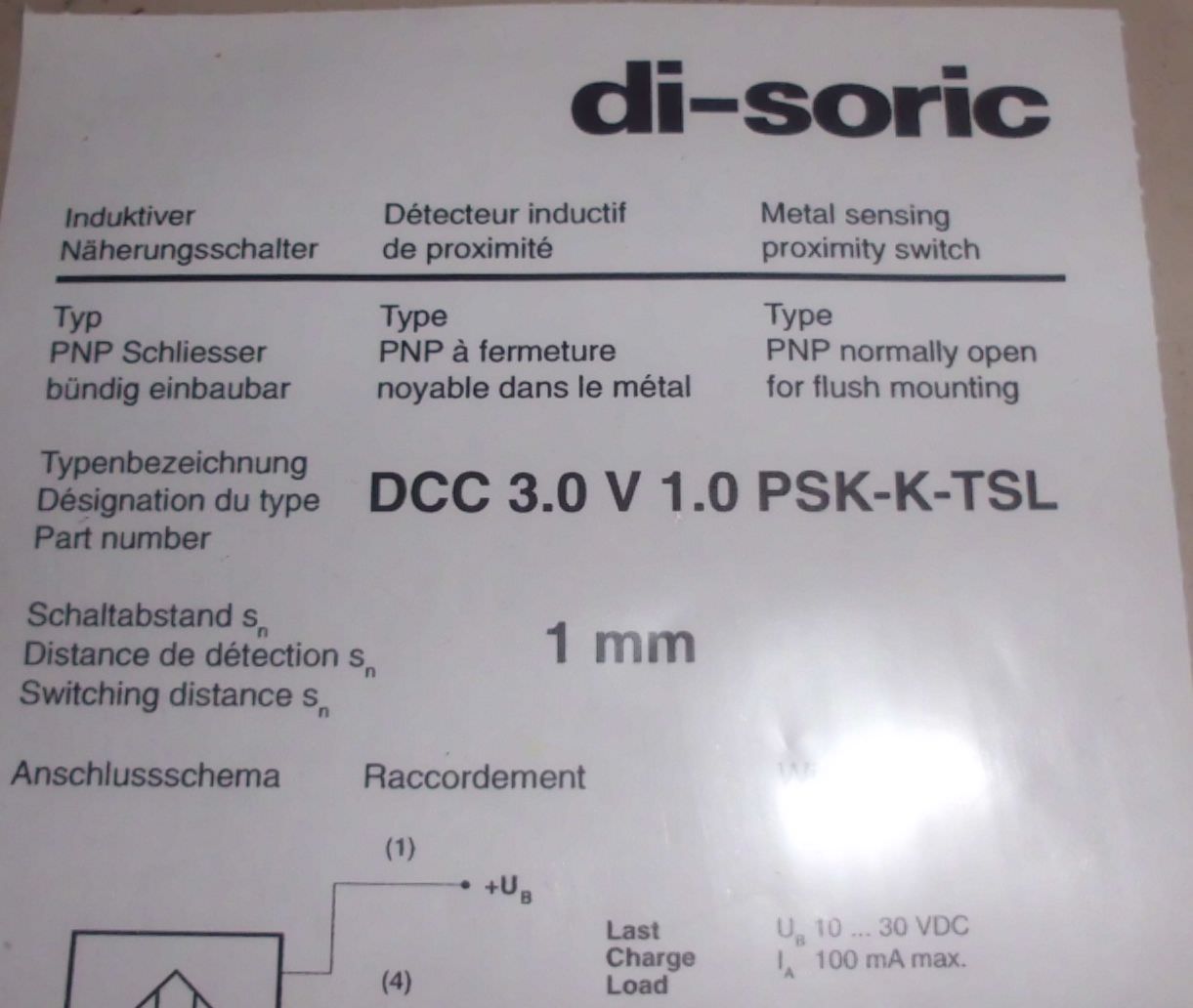 Näherungsschalter von di-soric – DCC 3.0V1.0 PSK-K-TSL im Zustand: gut und am Standort der Ware: 26215 Wiefelstede, DE