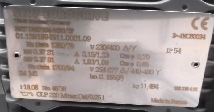 -Antriebsmotor: 0,37 kW 76 U/min