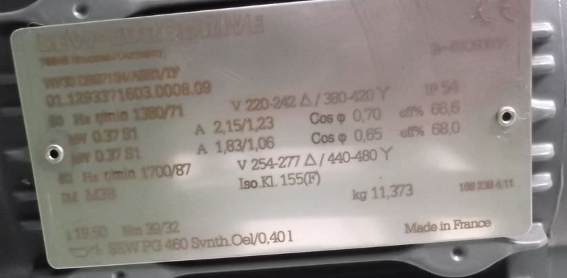 -Antriebsmotor: 0,37 kW 71 U/min