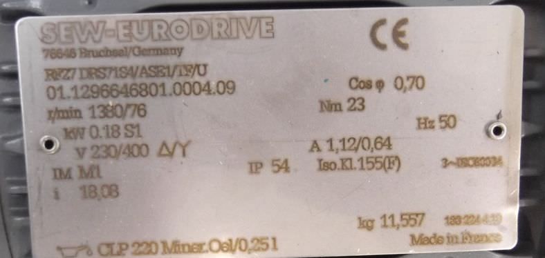 -Antriebsmotor: 0,18 kW 76 U/min