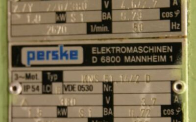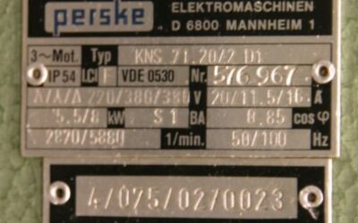 -1x Motor: 5,5 / 8 kW 2870 / 5880 U/min bei 50/100 Hz