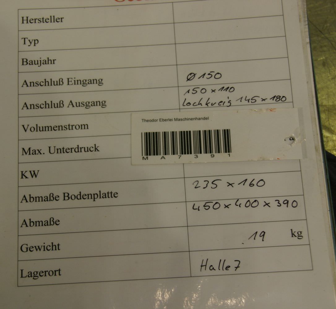 -Anschluss Eingang: Ø 150 mm