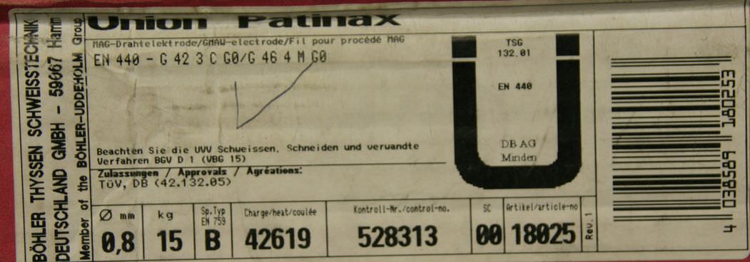 Schweißdraht 0,8 mm netto Gewicht 15 kg von UNION – NORMAG 2 G3Si1 (SG2 0,8)