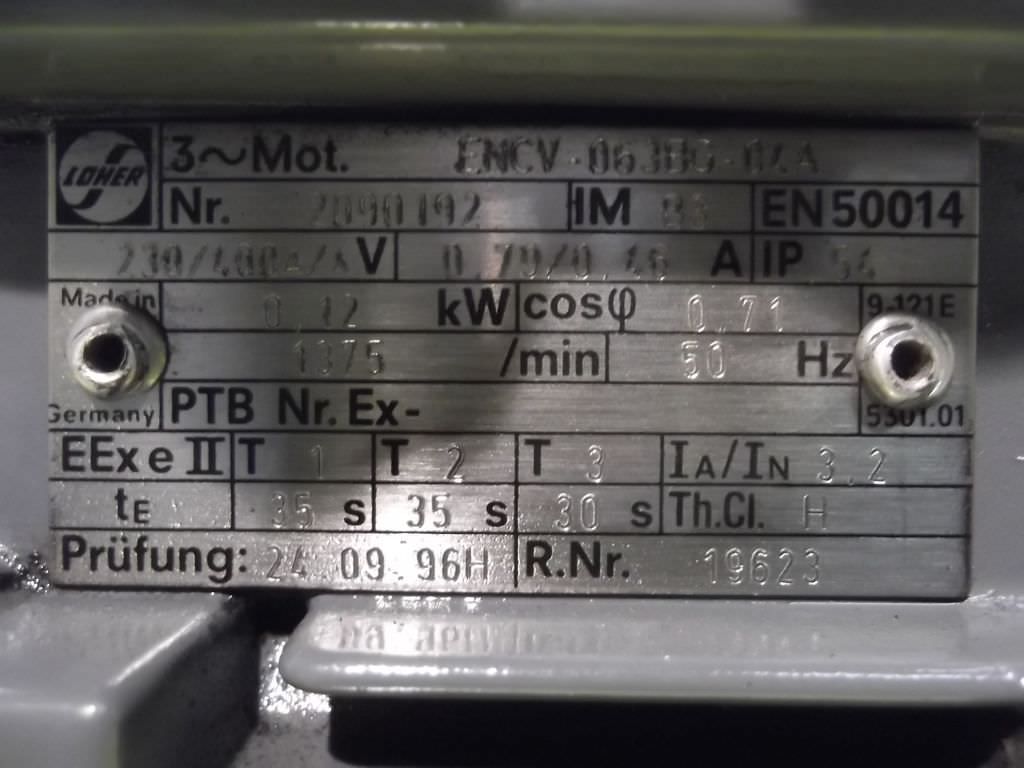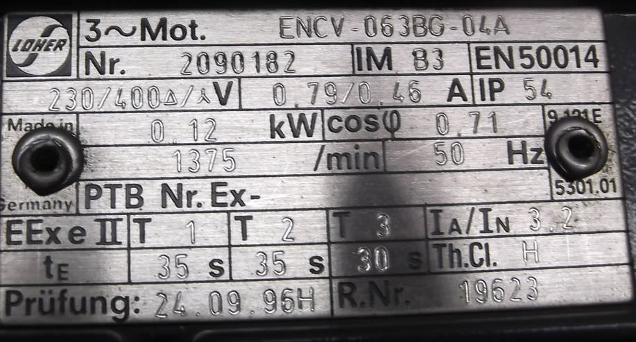 Elektromotor 0,12 kW 1375 U/min von Loher – ENCV-063BG-04A im Zustand: gut und am Standort der Ware: 26215 Wiefelstede, DE