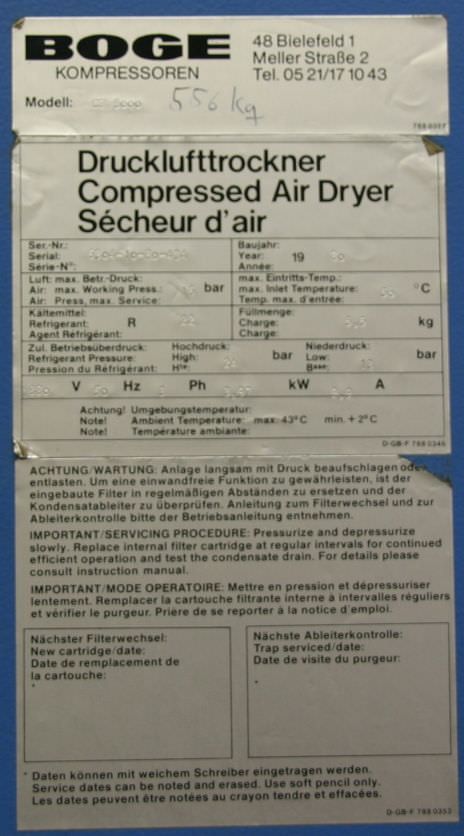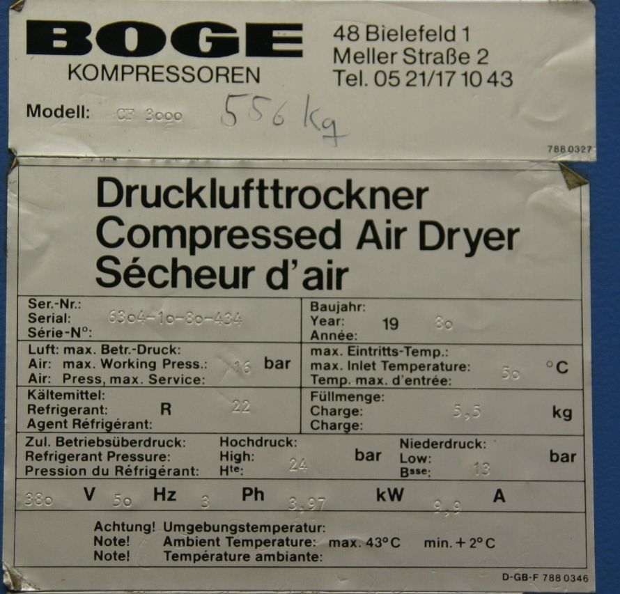 Drucklufttrockner von Boge – CF 3000 im Zustand: gut und am Standort der Ware: 26215 Wiefelstede, DE