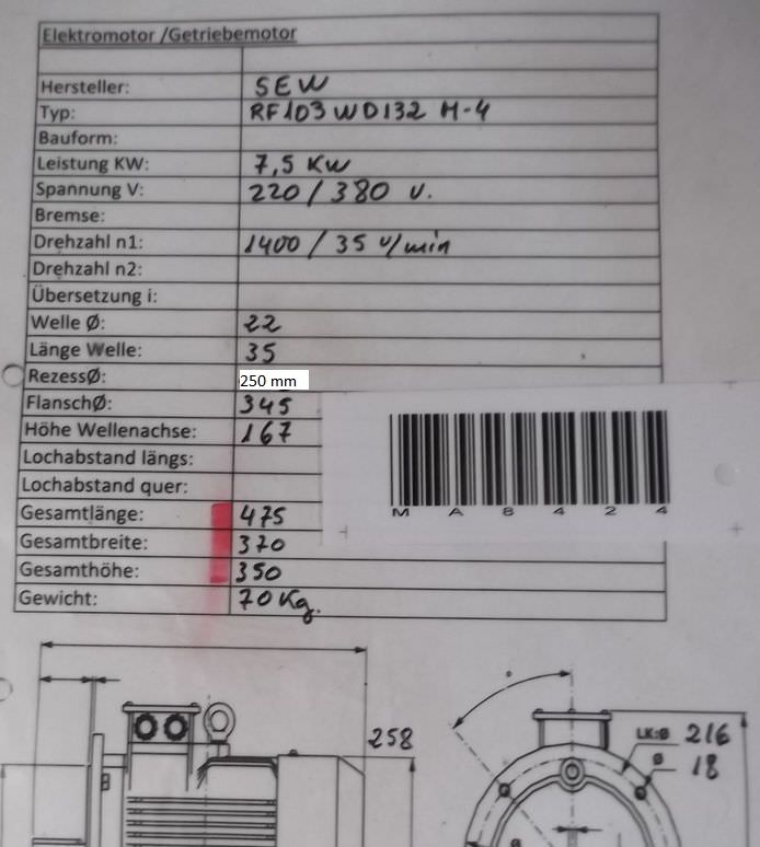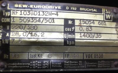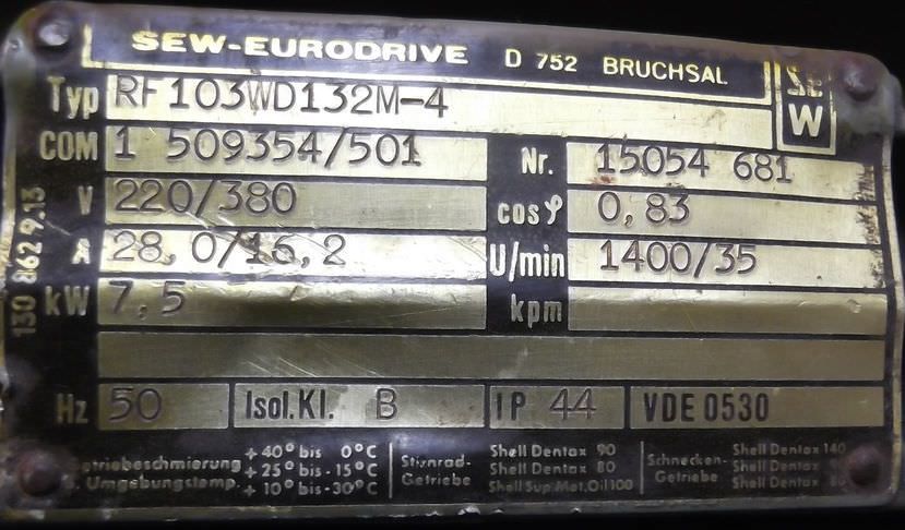 Elektromotor 7,5 kW 1400 U/min von SEW – RF103WD132M-4 im Zustand: gut und am Standort der Ware: 26215 Wiefelstede, DE