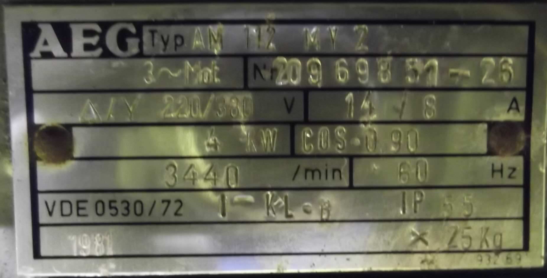 Elektromotor 4 kW 2860 U/min von AEG – AM112MY2 im Zustand: gut und am Standort der Ware: 26215 Wiefelstede, DE