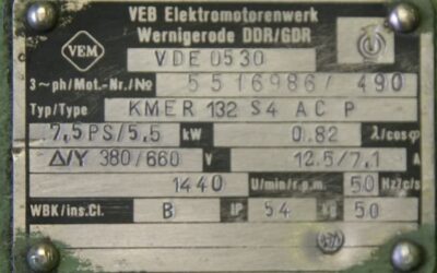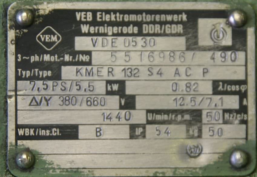 Elektromotor 5,5 kW 1440 U/min von VEM – KMER132S4ACP im Zustand: gut und am Standort der Ware: 26215 Wiefelstede, DE