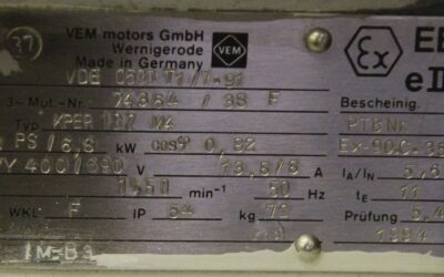 Elektromotor 6,8 kW 1450 U/min von VEM – KPER132M4 im Zustand: gut und am Standort der Ware: 26215 Wiefelstede, DE