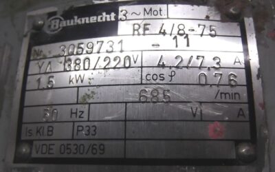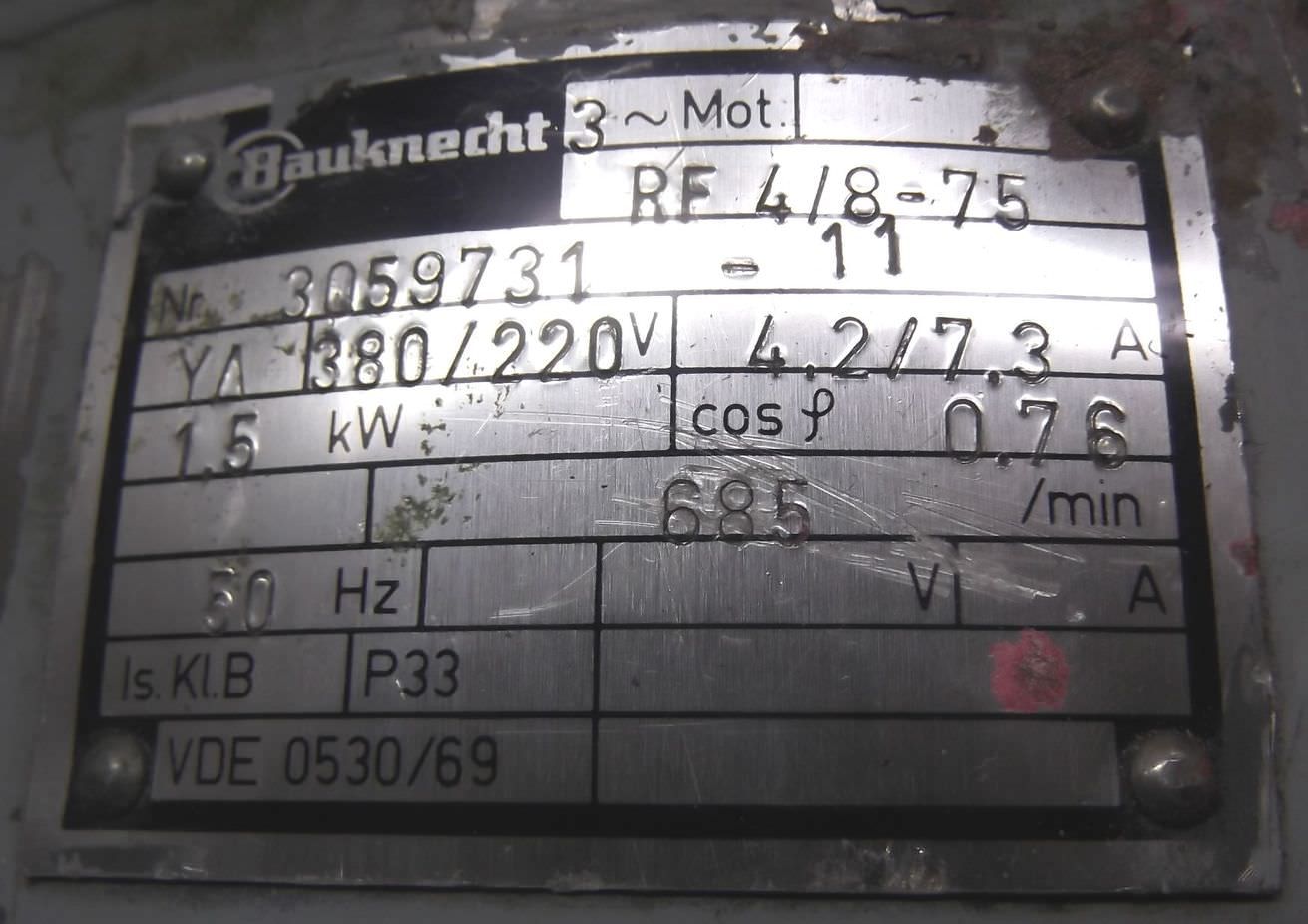 Elektromotor 1,5 kW 685 U/min von Bauknecht – RF4/8-75 im Zustand: gut und am Standort der Ware: 26215 Wiefelstede, DE