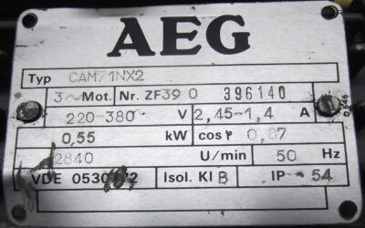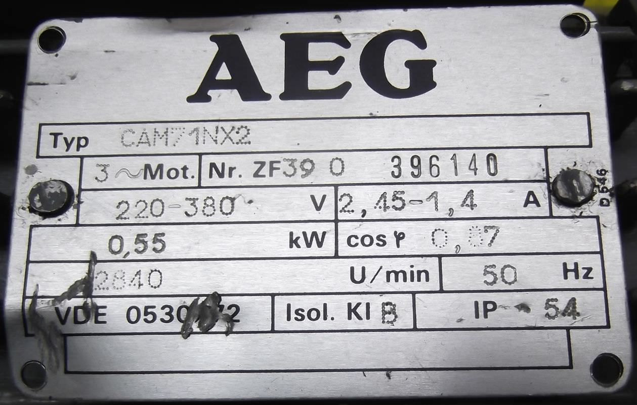 Elektromotor 0,55 kW 2840 U/min von AEG – CAM71NX2 im Zustand: gut und am Standort der Ware: 26215 Wiefelstede, DE