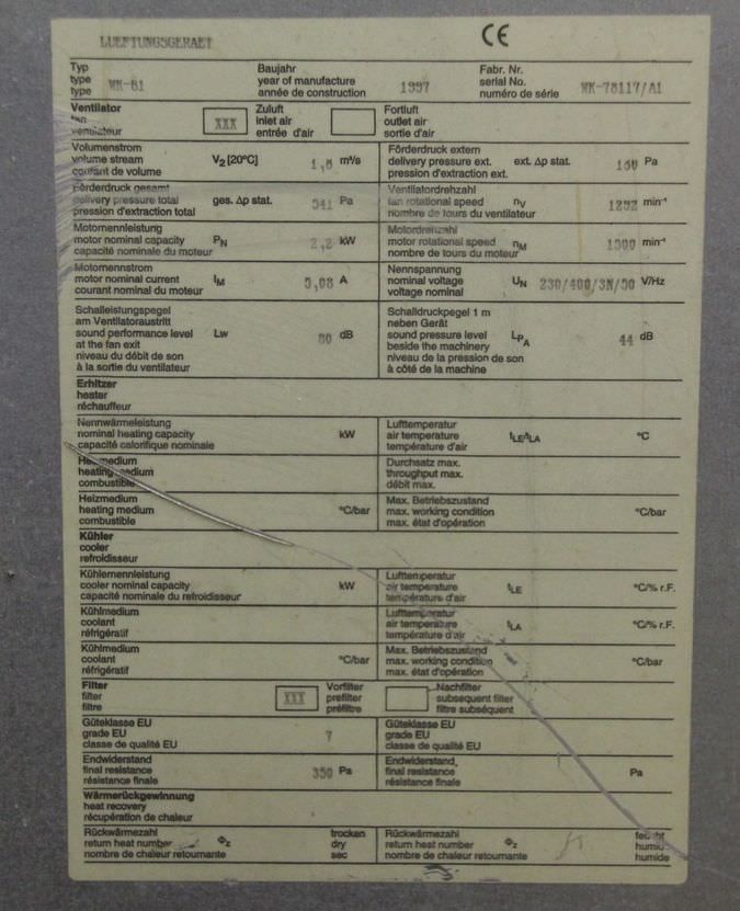 Lüftungsanlage von Heimer – WK-61 im Zustand: gut und am Standort der Ware: 26215 Wiefelstede, DE