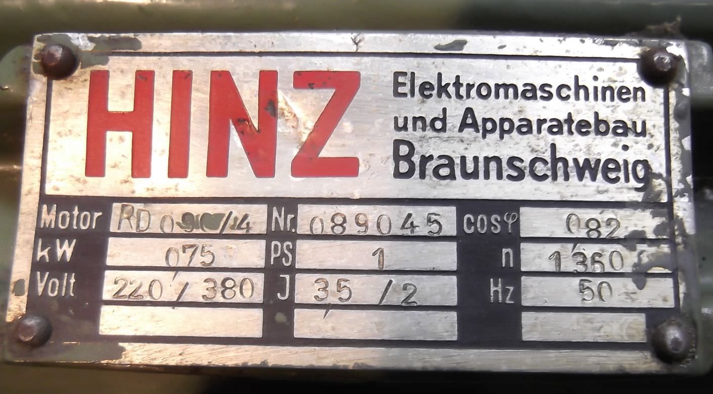 Elektromotor 0,75 kW 1360 U/min von Hinz – RD090/4 im Zustand: gut und am Standort der Ware: 26215 Wiefelstede, DE