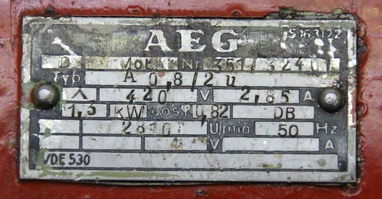 Elektromotor 1,3 kW 2810 U/min von AEG – A 0,8/2u im Zustand: gut und am Standort der Ware: 26215 Wiefelstede, DE