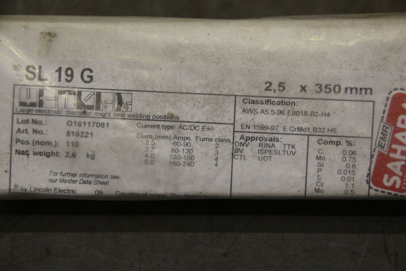 Stabelektroden Schweißelektroden 2,5 x 350 von Lincoln – SL 19 G im Zustand: gut und am Standort der Ware: 26215 Wiefelstede, DE