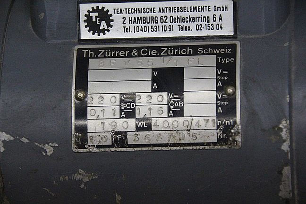 Getriebemotor 0,19 kW von Zürrer – BFV 55 1/1 FL im Zustand: gut und am Standort der Ware: 26215 Wiefelstede, DE