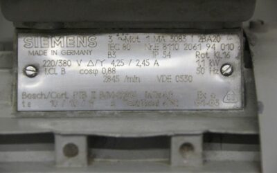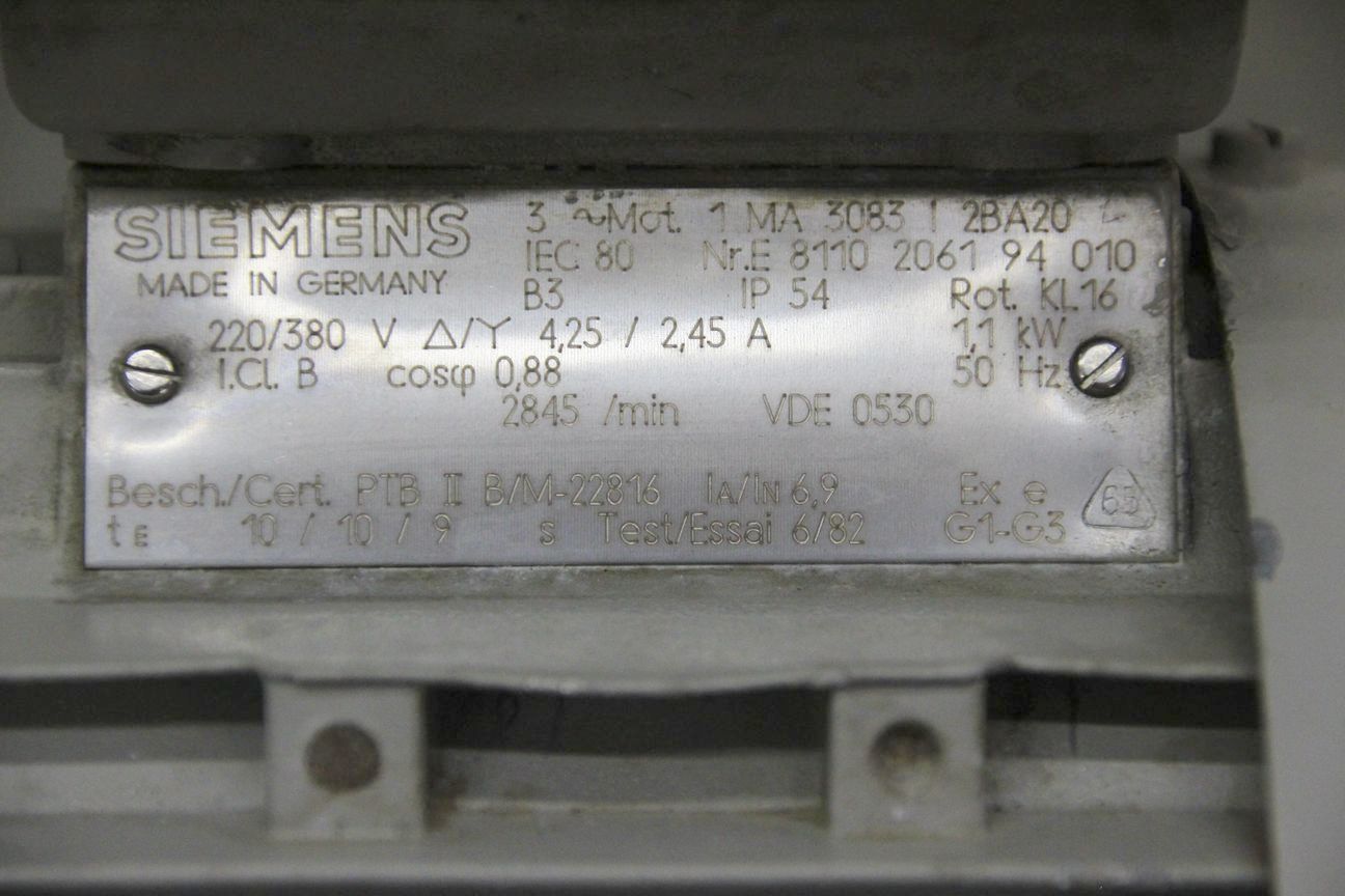Elektromotor 1,1 kW 2845 U/min von Siemens – 1 MA 3083 / 2BA20 im Zustand: gut und am Standort der Ware: 26215 Wiefelstede, DE