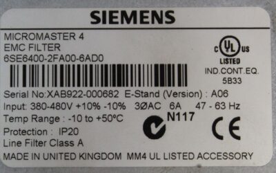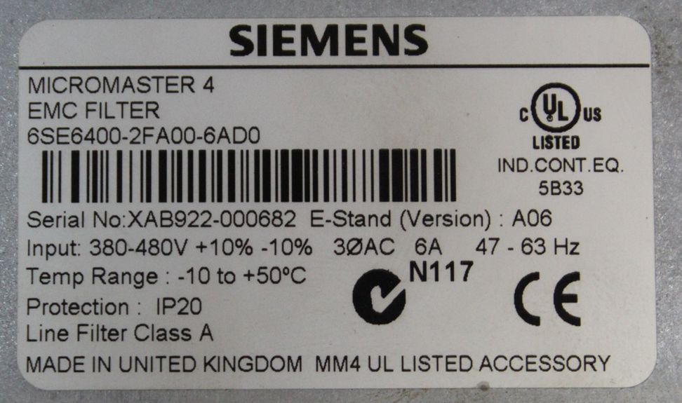 -Eingang: 3 AC 380 – 480 V 3,8 A 50/60 Hz