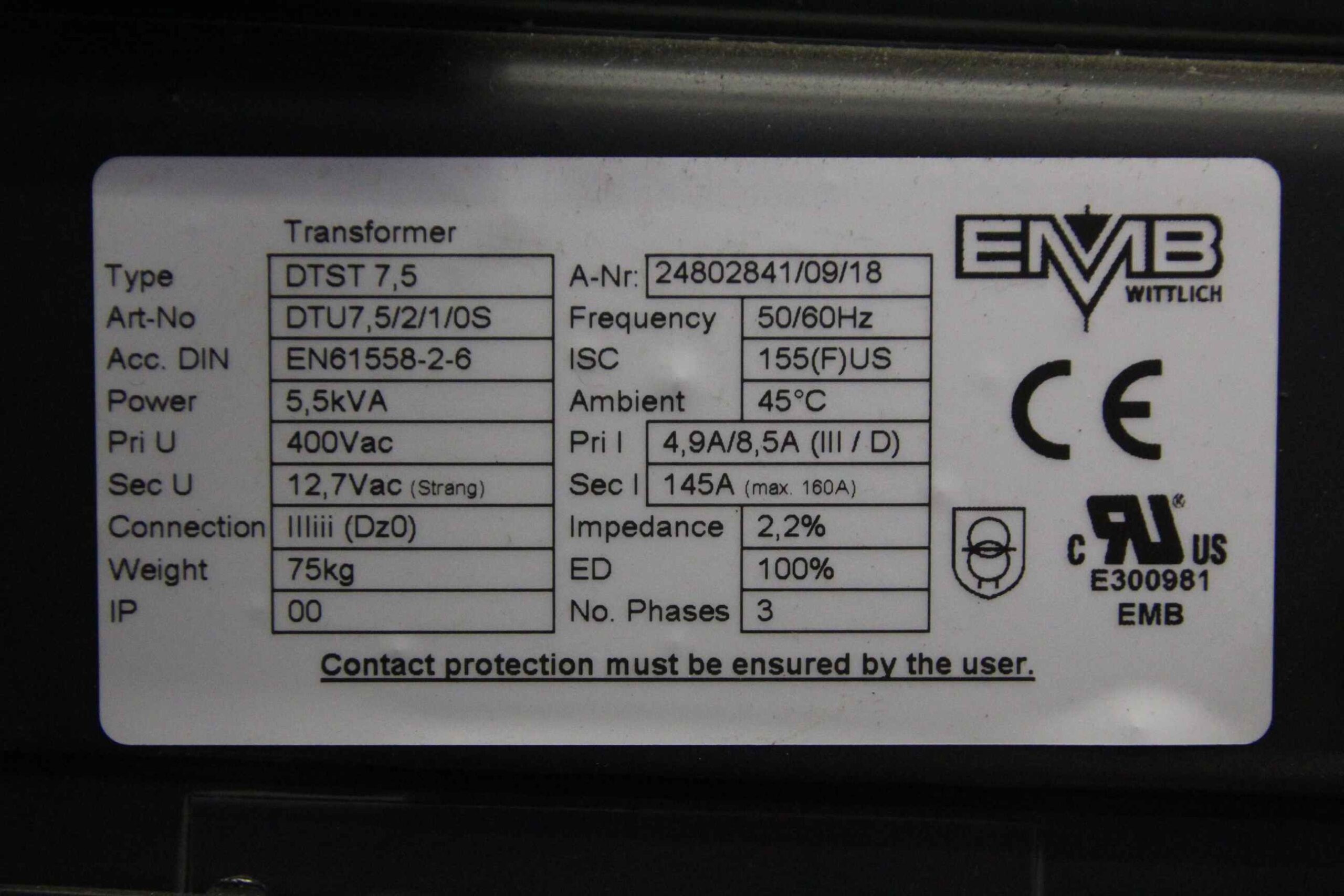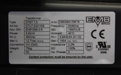 Transformatoren 5,5 kVA 2 Stück von EMB Wittlich – 2x DTST 7,5 im Zustand: gut und am Standort der Ware: 26215 Wiefelstede, DE