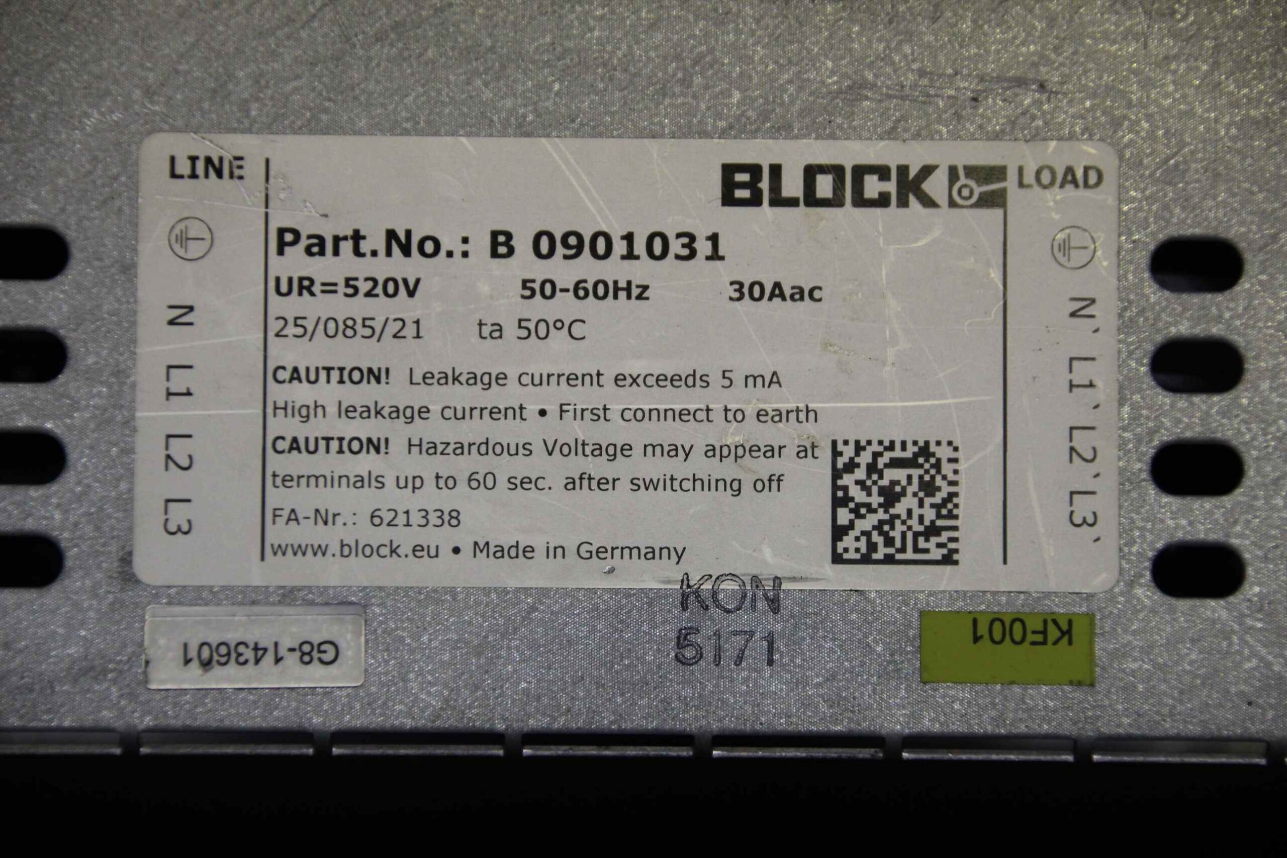 Entstörfilter von Block – 3 x 520 V im Zustand: gut und am Standort der Ware: 26215 Wiefelstede, DE