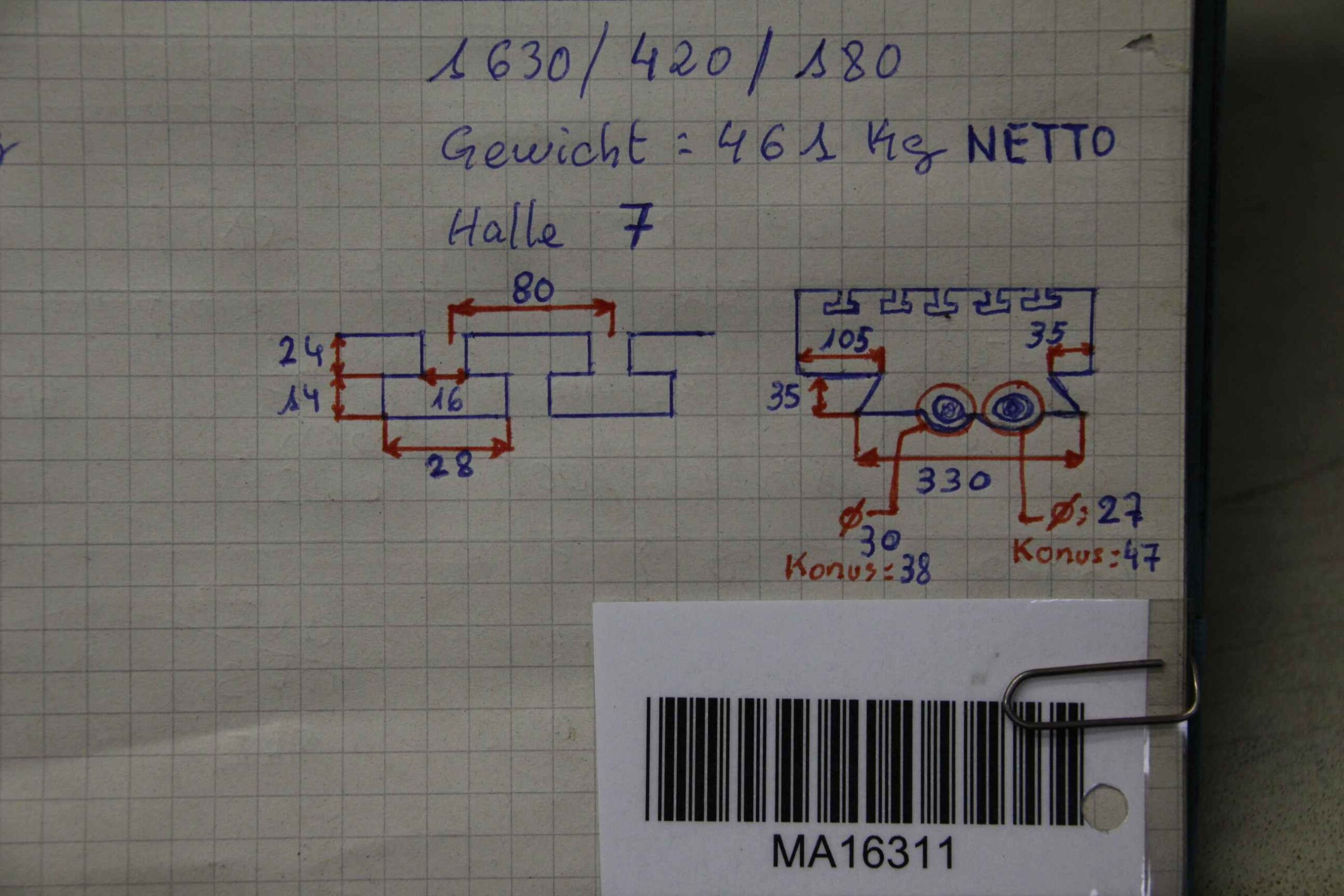 -Abmessung ges.: 1630/420/H180 mm