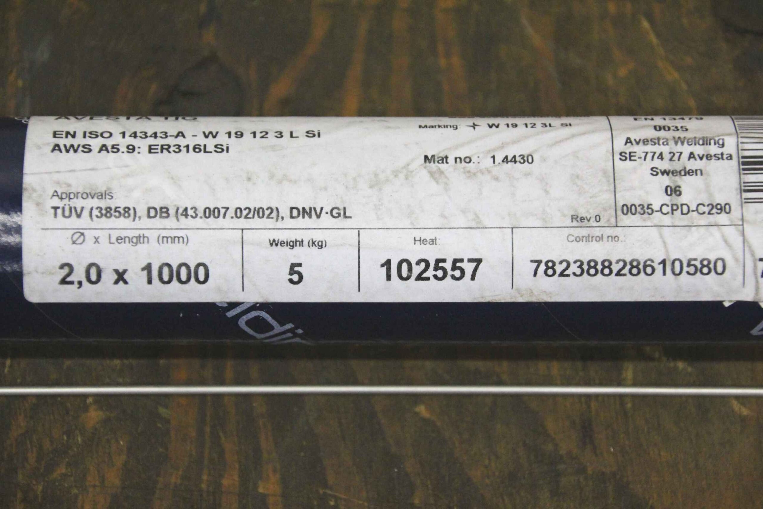 WIG-Schweißstab 5 kg von Avesta – 316L-Si/SKR-Si im Zustand: gut und am Standort der Ware: 26215 Wiefelstede, DE