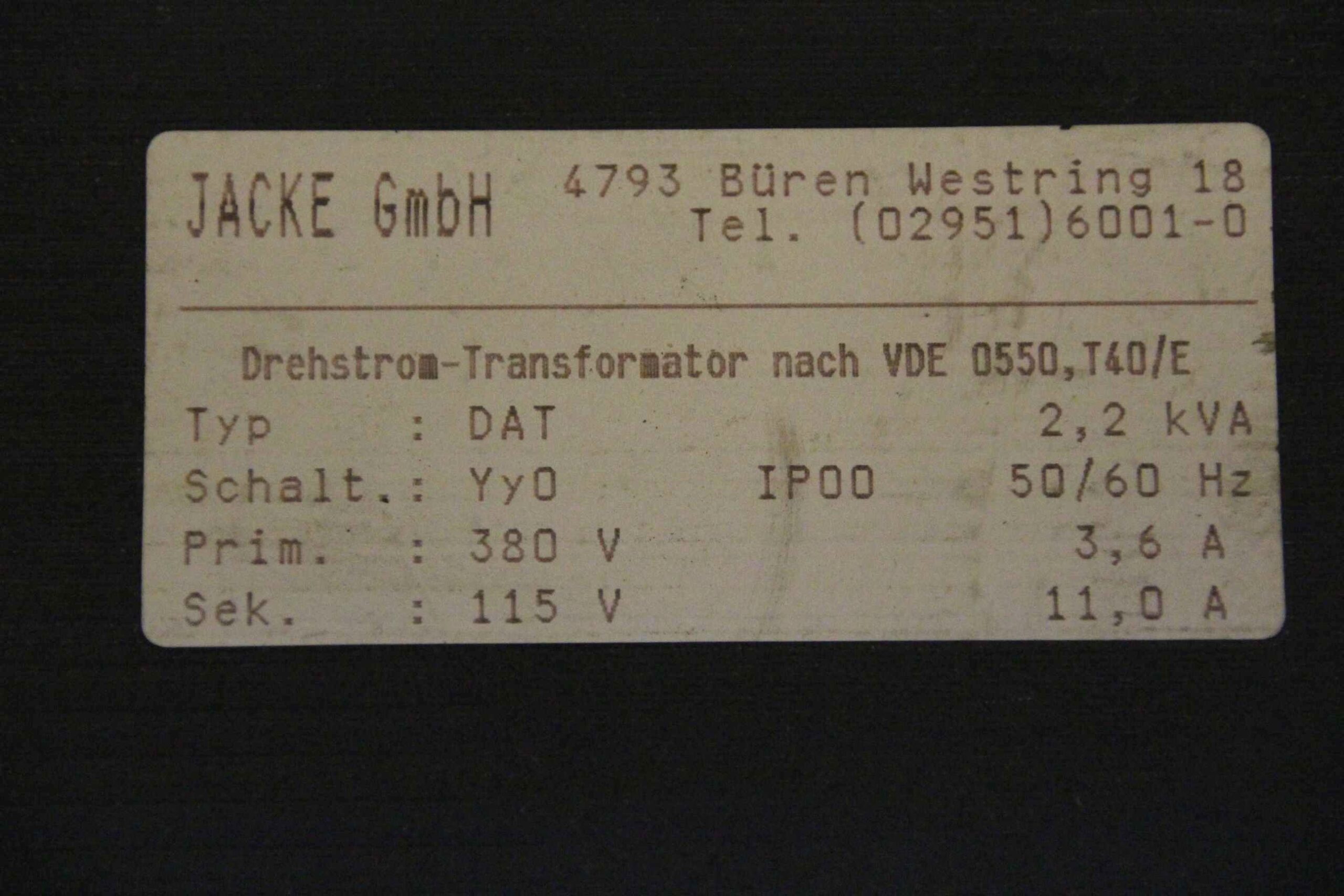 -Primär: 380 V 3,6 A