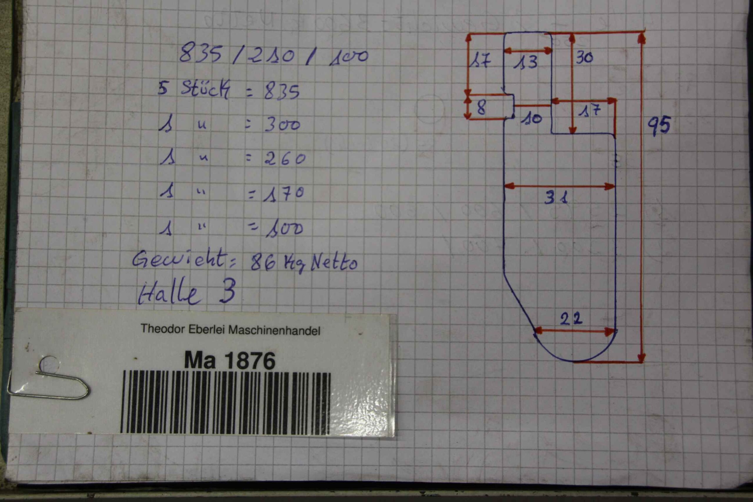 -Längen: 5 x 835 mm / jew. 1 x 300/260/170/100 mm