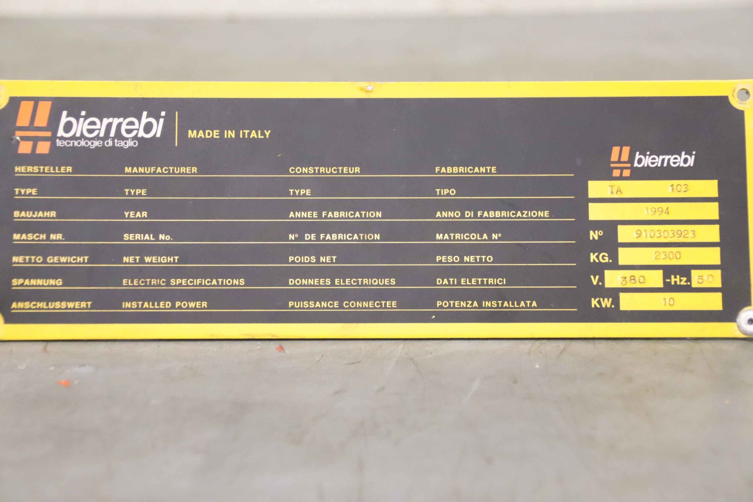 -Hersteller: Bierrebi LEA SRL. Steuerungsmodul aus Schnittautomat Schneidemaschine Bierrebi TA 103