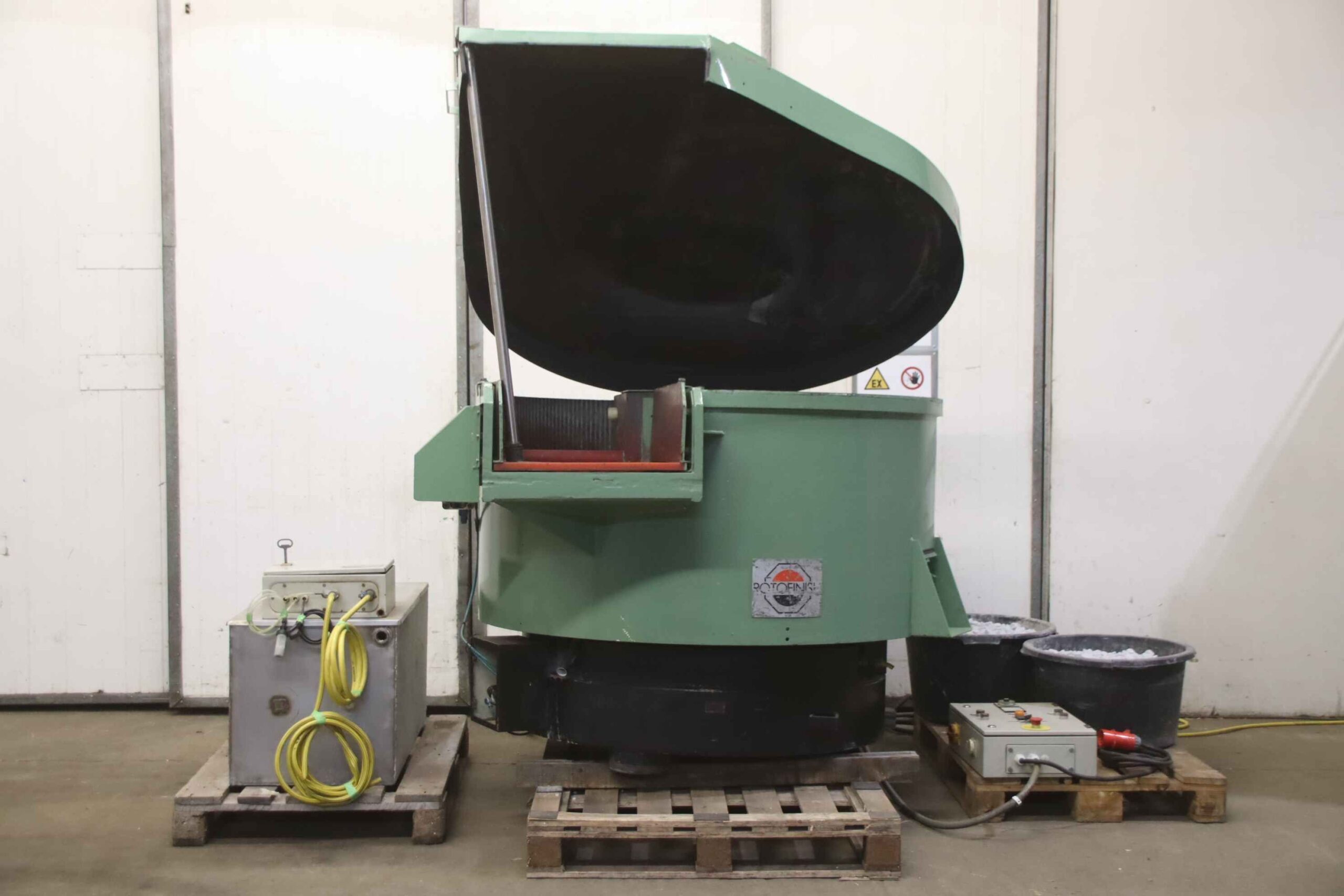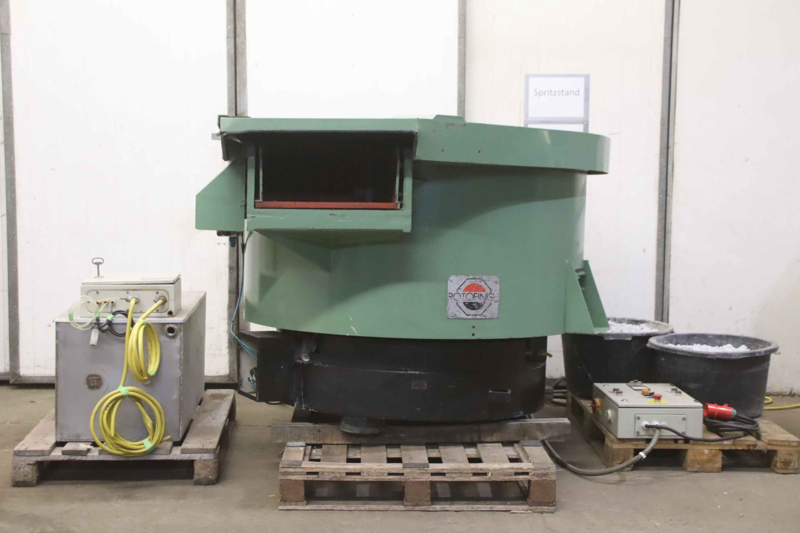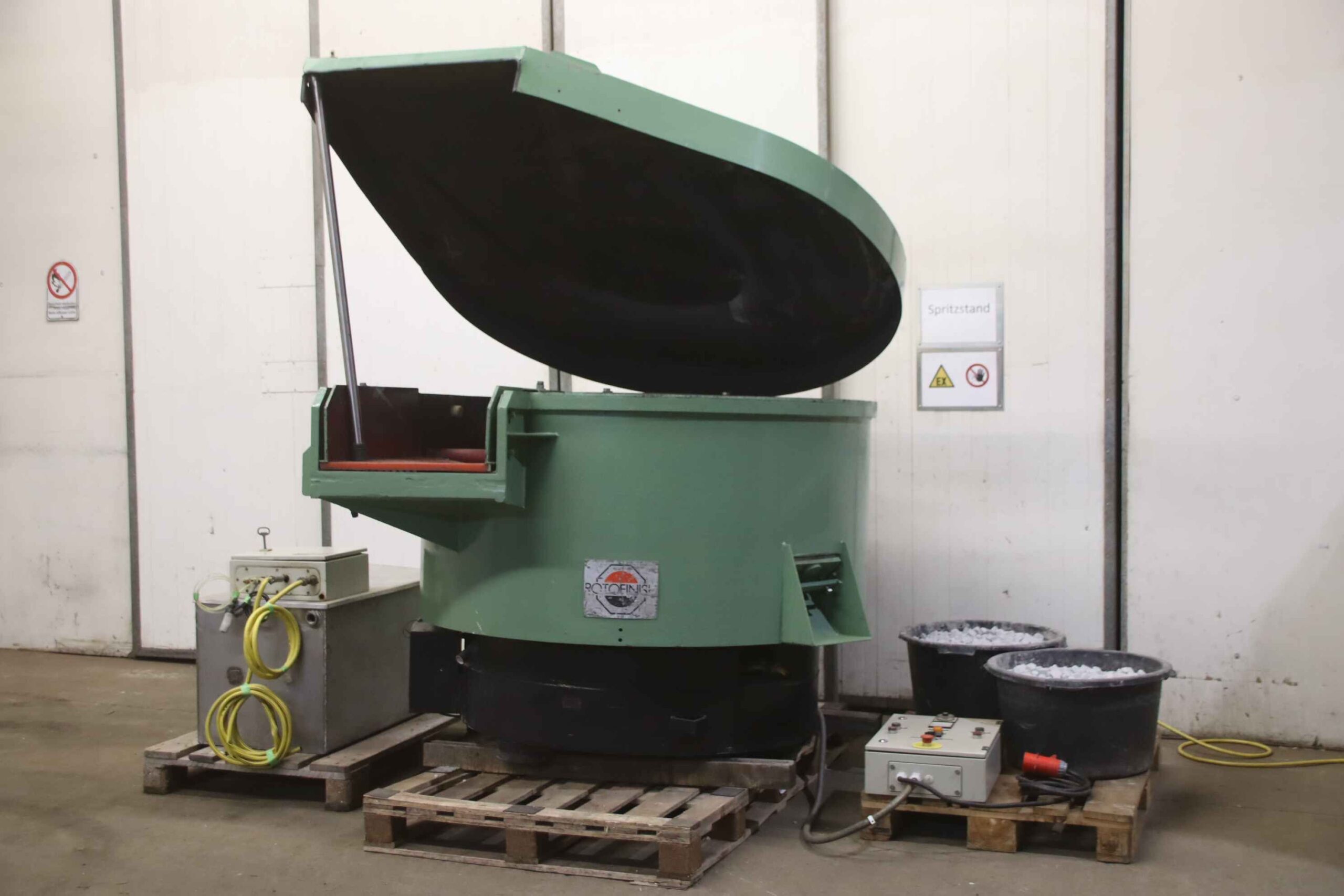 -Rundvibrator: mit Schallschutzhaube, kleiner Abwasseranlage mit Sprüheinrichtung