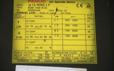 Spindelmotor von Fanuc Santenberg – A06B-1448-B100 GTC S 2 im Zustand: gut und am Standort der Ware: 26215 Wiefelstede, DE