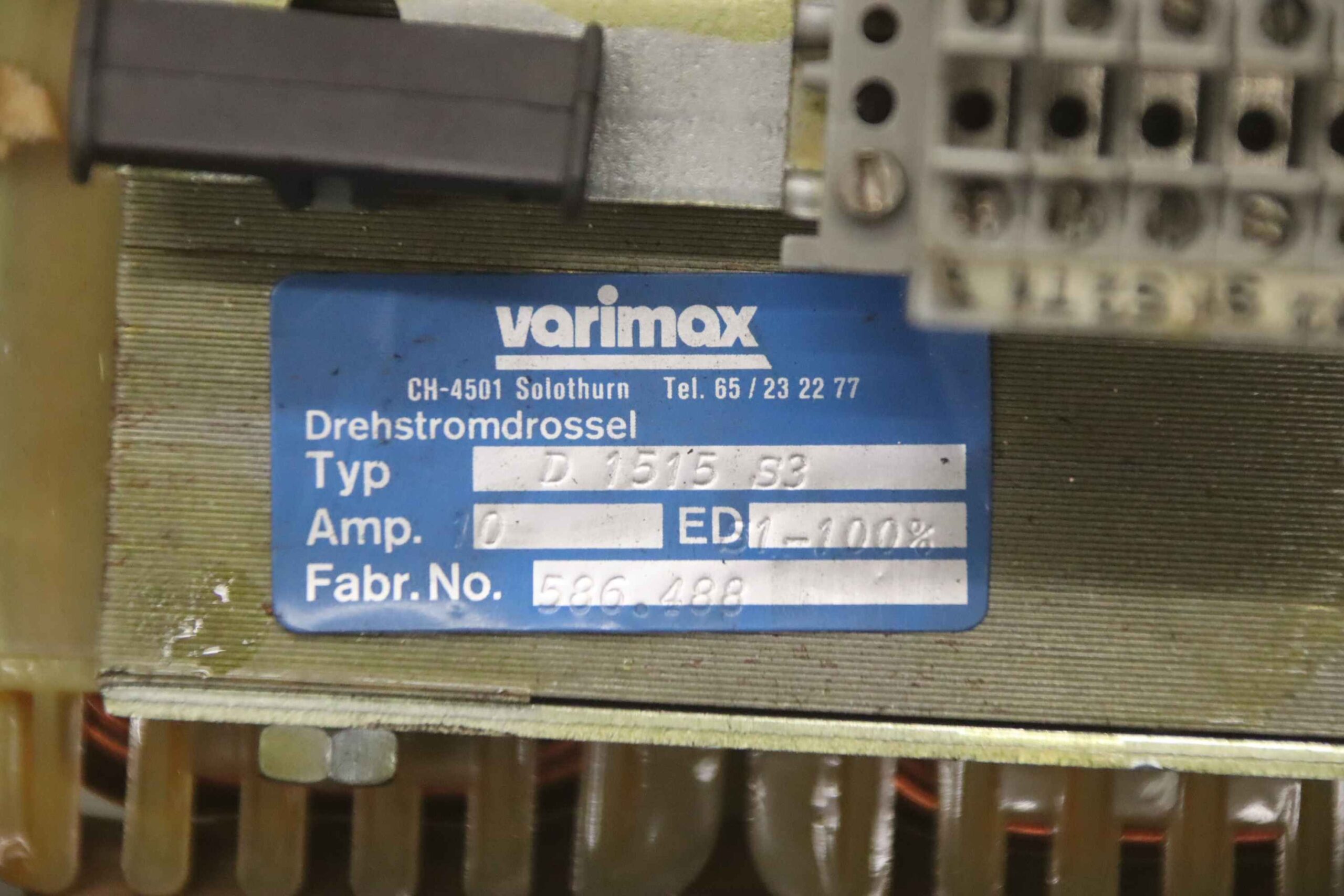 -Hersteller: varimax, Sanftanlaufdrossel Drehstromdrossel aus CNC Fräsmaschine Mikron WF 51C/155