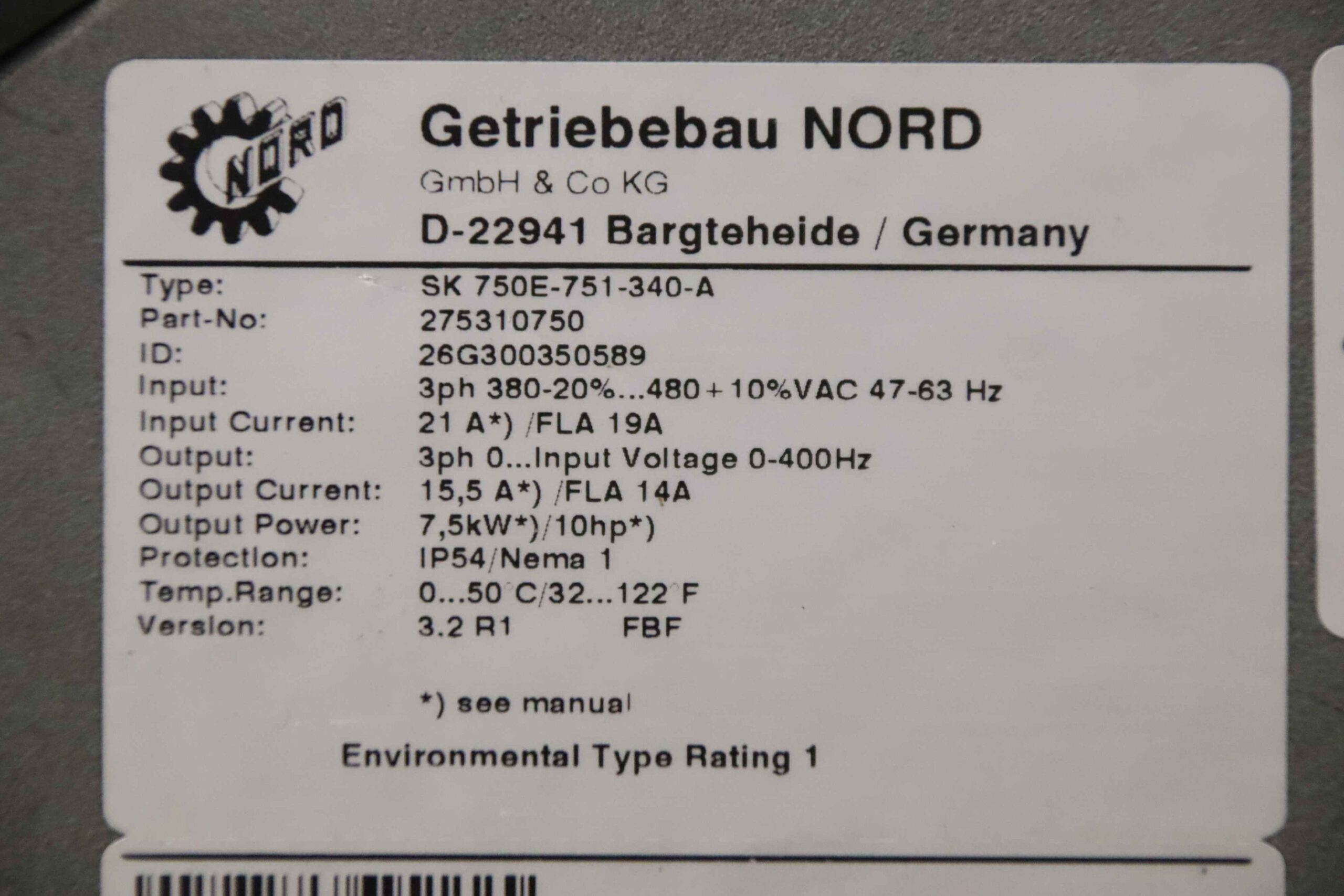 -Typ: SK 750E-751-340-A 7,5 kW 1 Stück