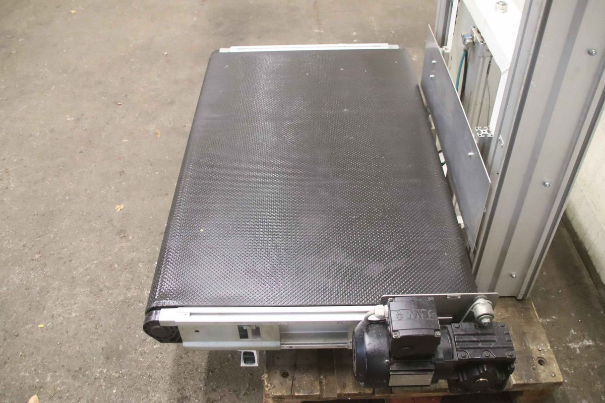 -Hersteller: Interroll, Gurtförderer Typ 4081 mit pneumatischer Höhenverstellung