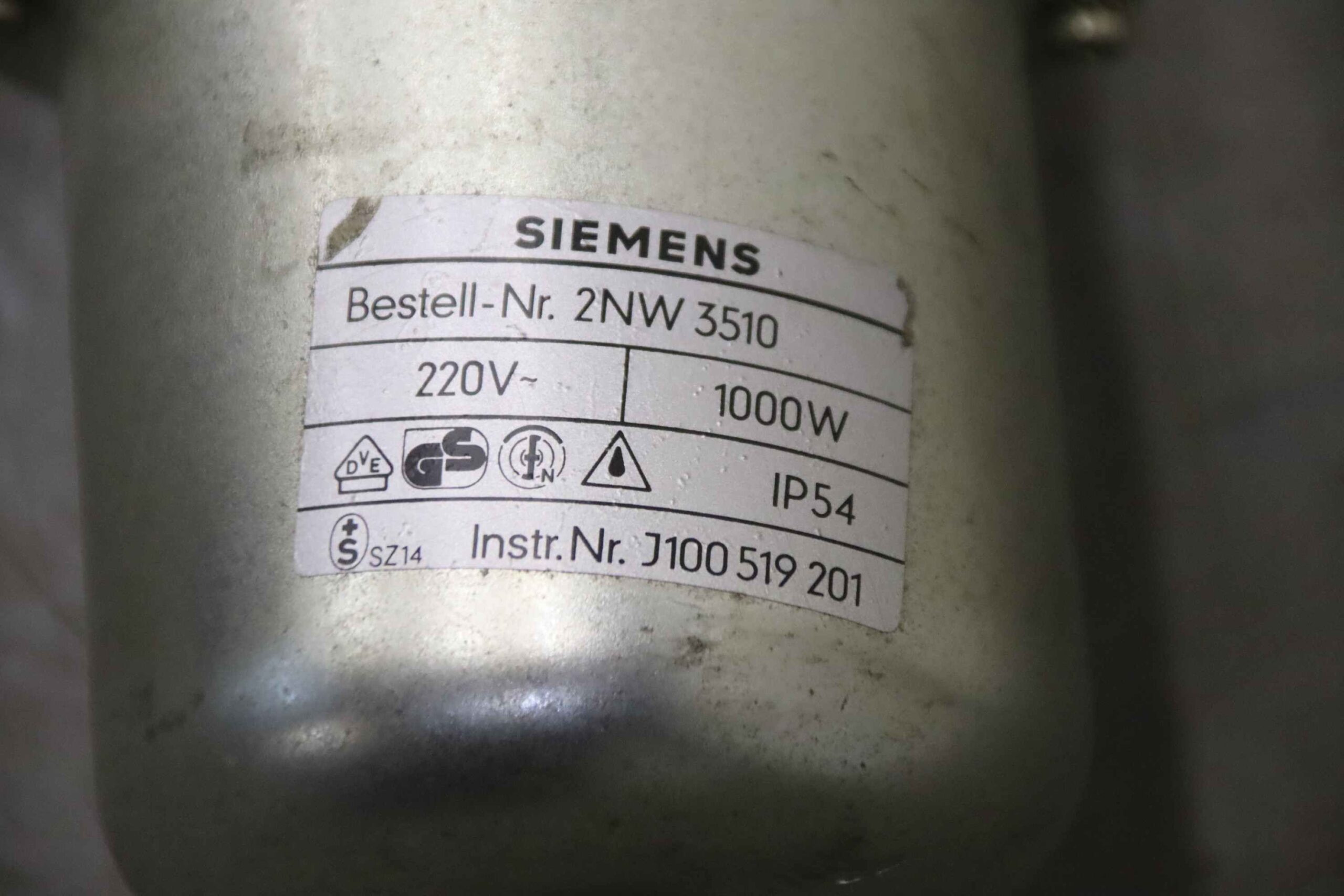 -Typ: Bestell-Nr.: 2NW 3510 Instr.Nr.:J100 519 201