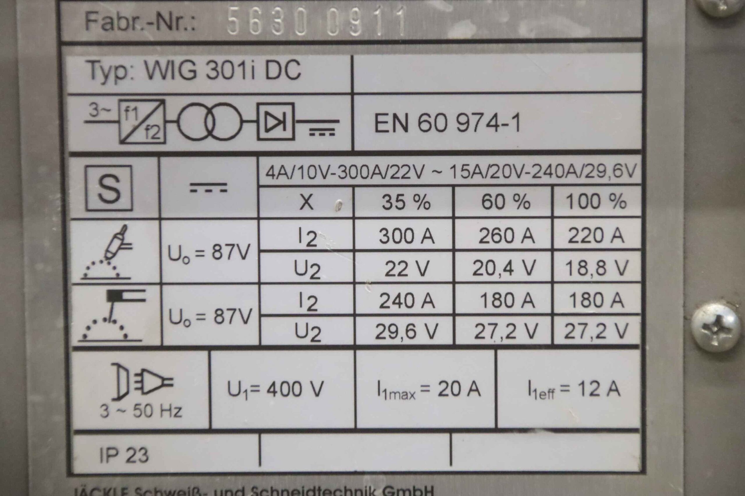-Schweißleistung: max. 300 A, siehe Typenschild