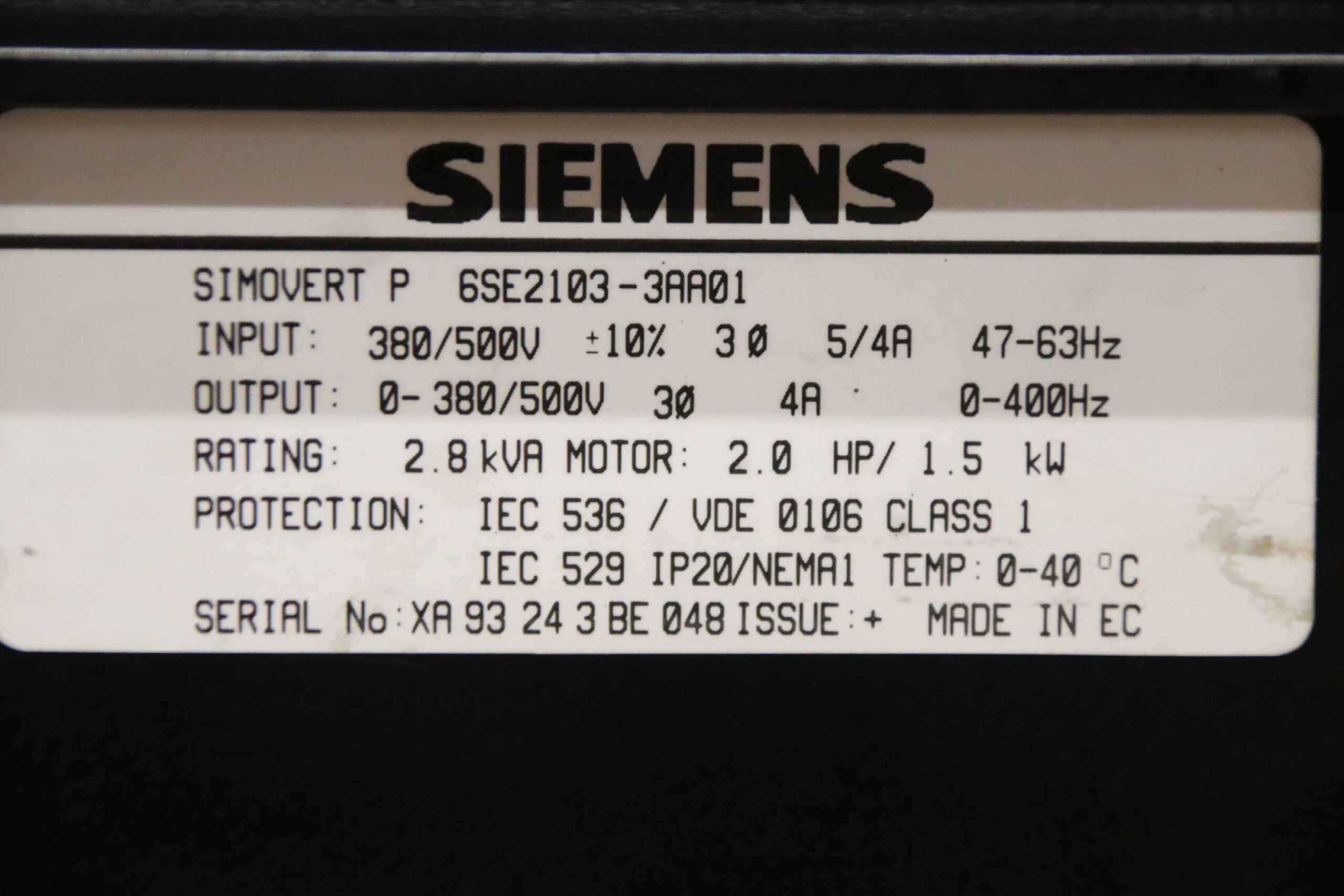 -Hersteller: Siemens, Frequenzumrichter SIMOVERT-P 6SE 1110-4AA02