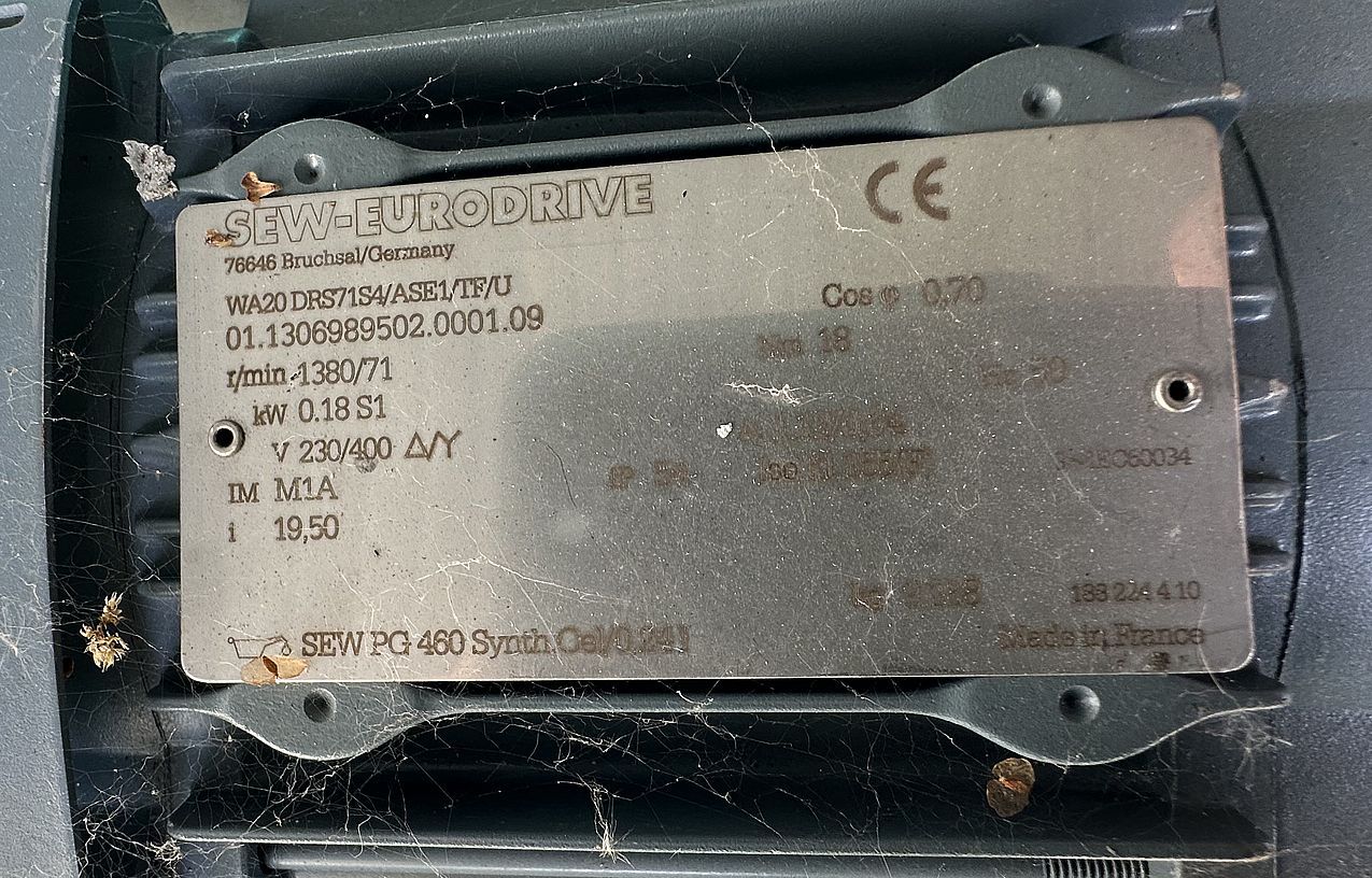 -Antrieb: SEW-Eurodrive 0,18 kW 1380/71 U/min