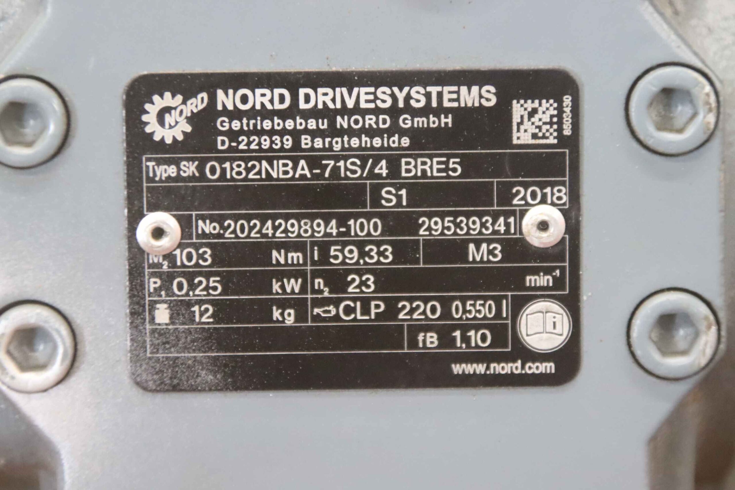 Getriebemotor 0,25 kW 23 U/min von Nord – SK 0182NBA-71S/4 BRE5 im Zustand: gut und am Standort der Ware: 26215 Wiefelstede, DE