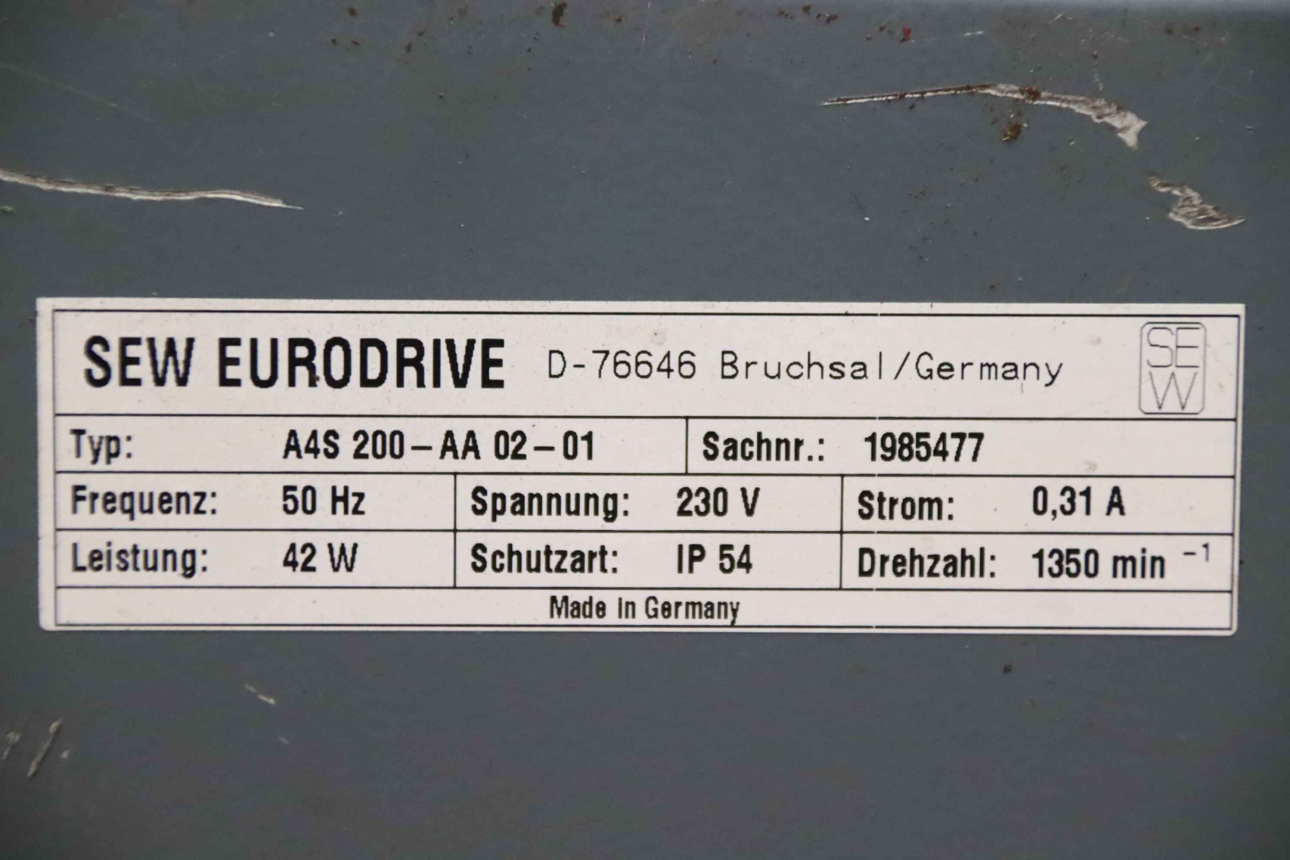 -Typ: A4S 200-AA 02-01 0,042 kW / 1350 U/min