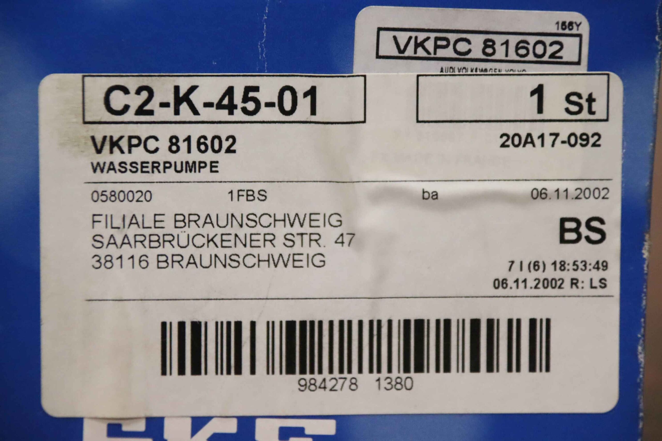Wasserpumpe von SKF – AquaMax VKPC 81602 im Zustand: gut und am Standort der Ware: 26215 Wiefelstede, DE