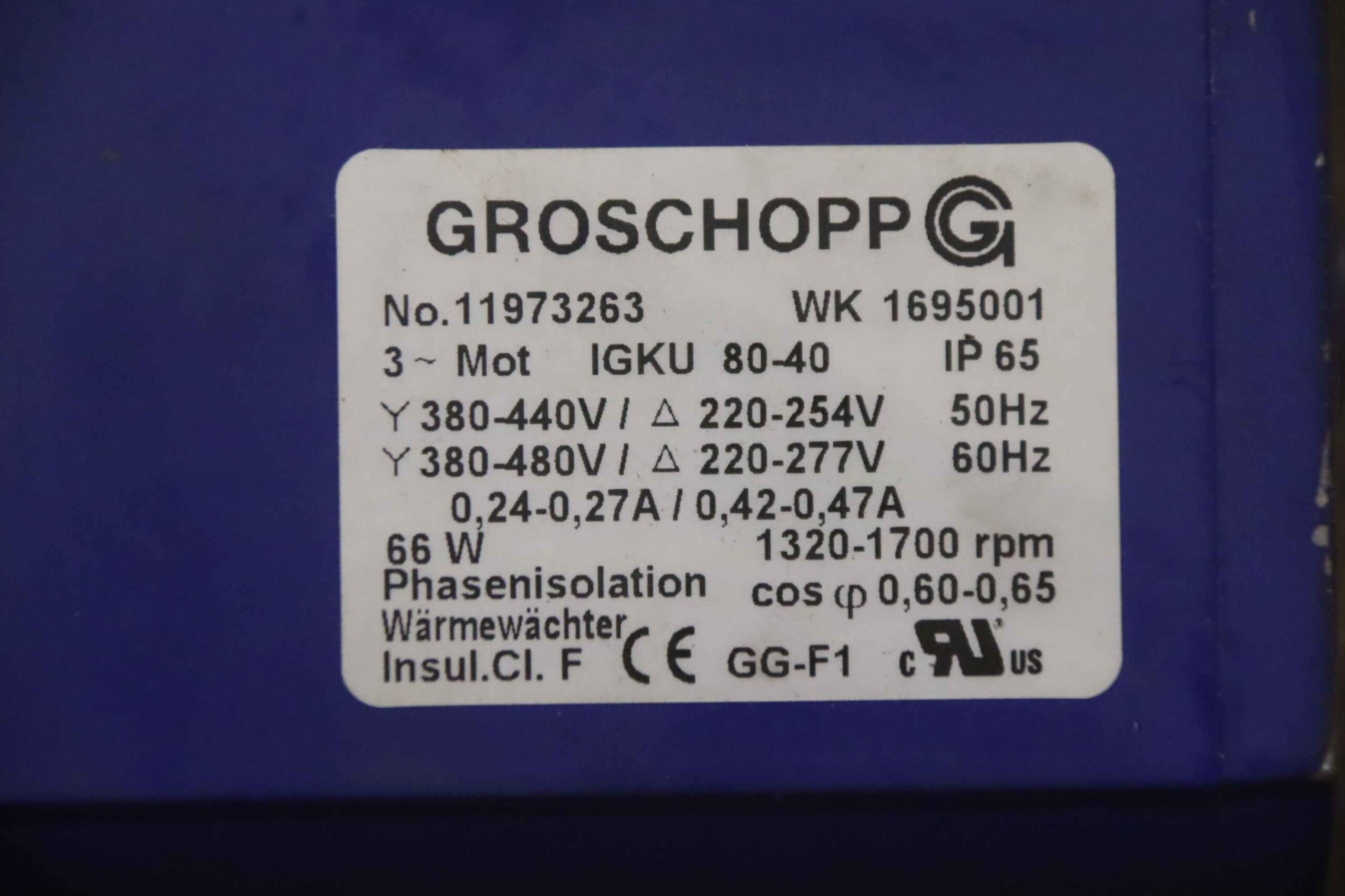 -Motor: Typ WK 1695001 IGKU 80-40 66 W / 1320 U/min