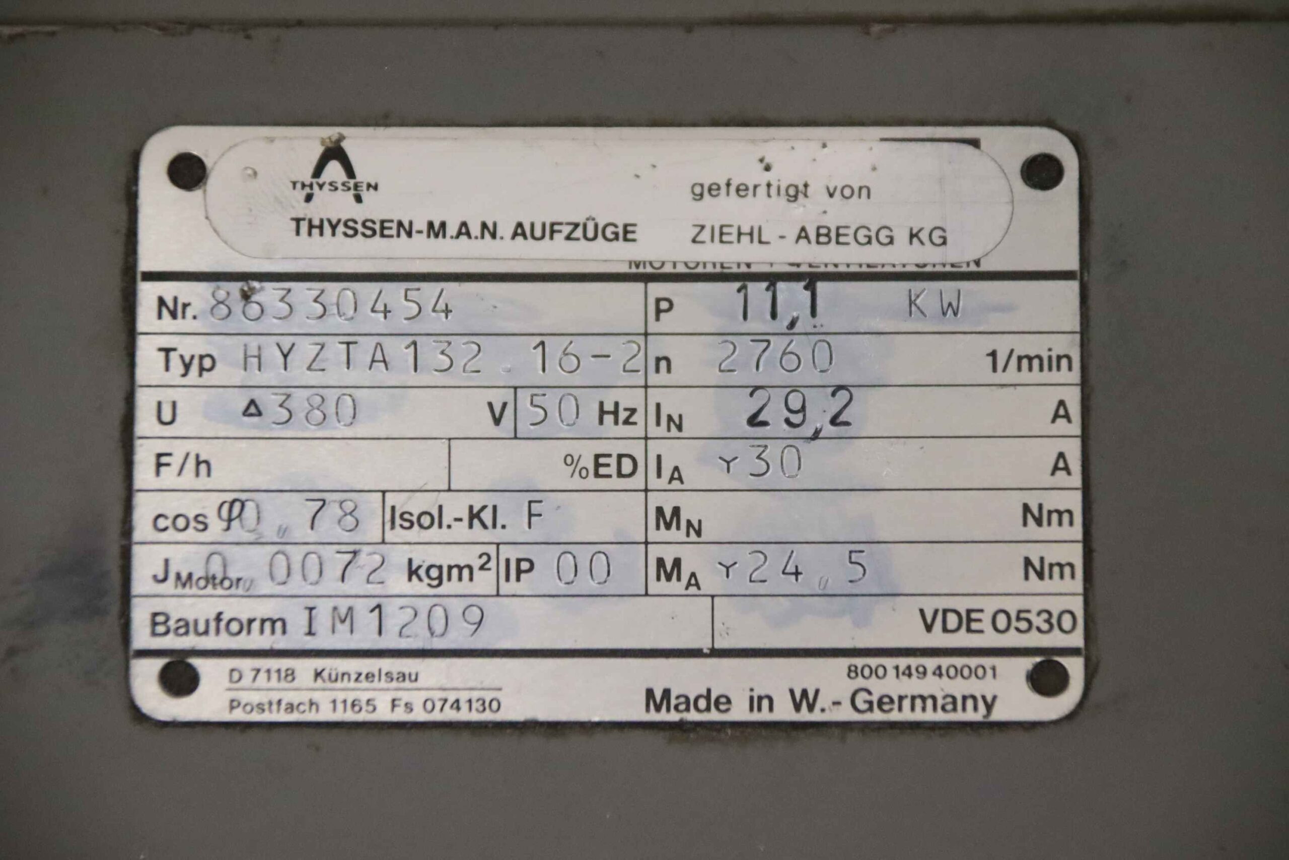 -Motor: 11,1 kW 2760 U/min