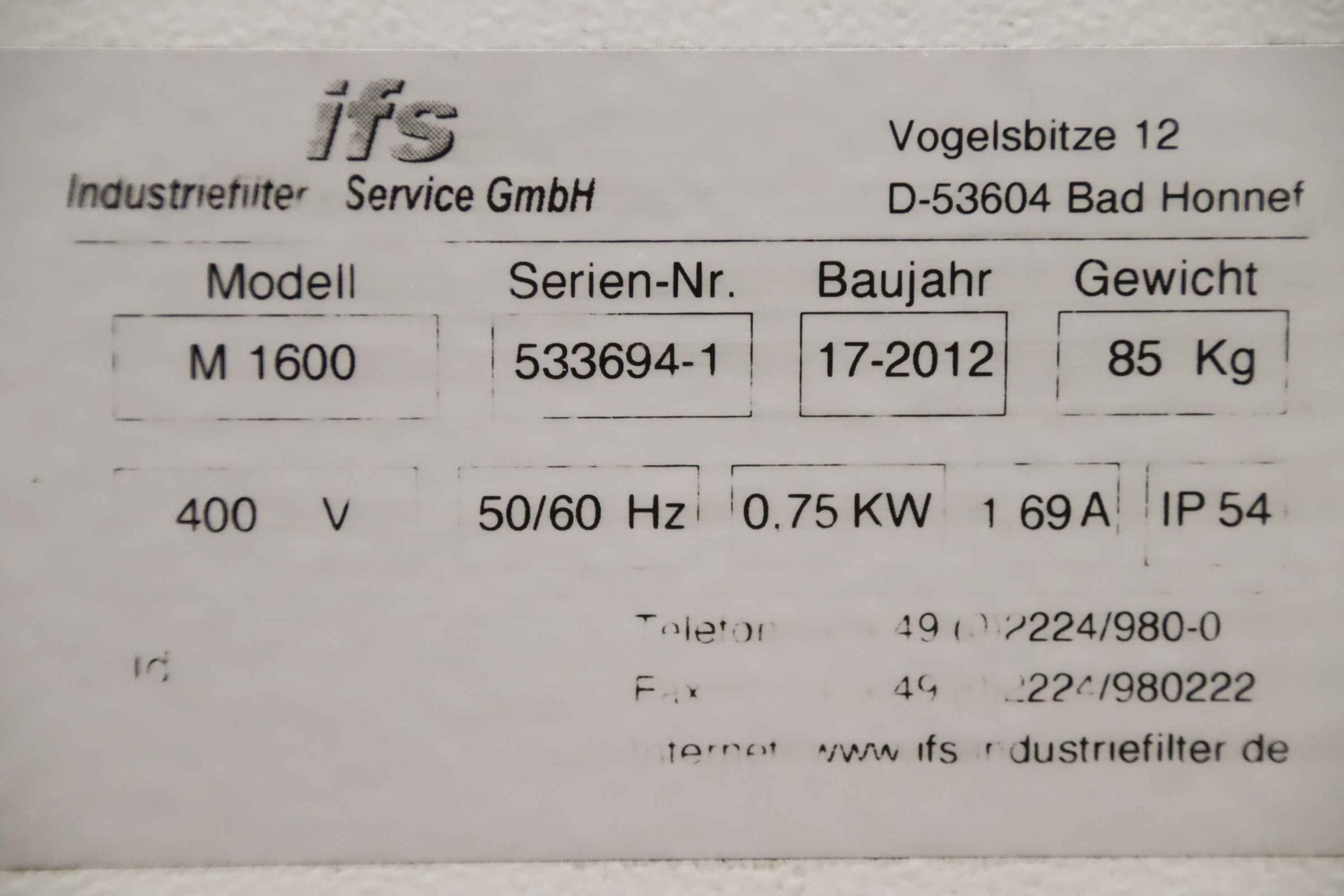 -Hersteller: ifs, Abluftreinigungsanlage IndustriefilterTyp IF-Vario M 1600