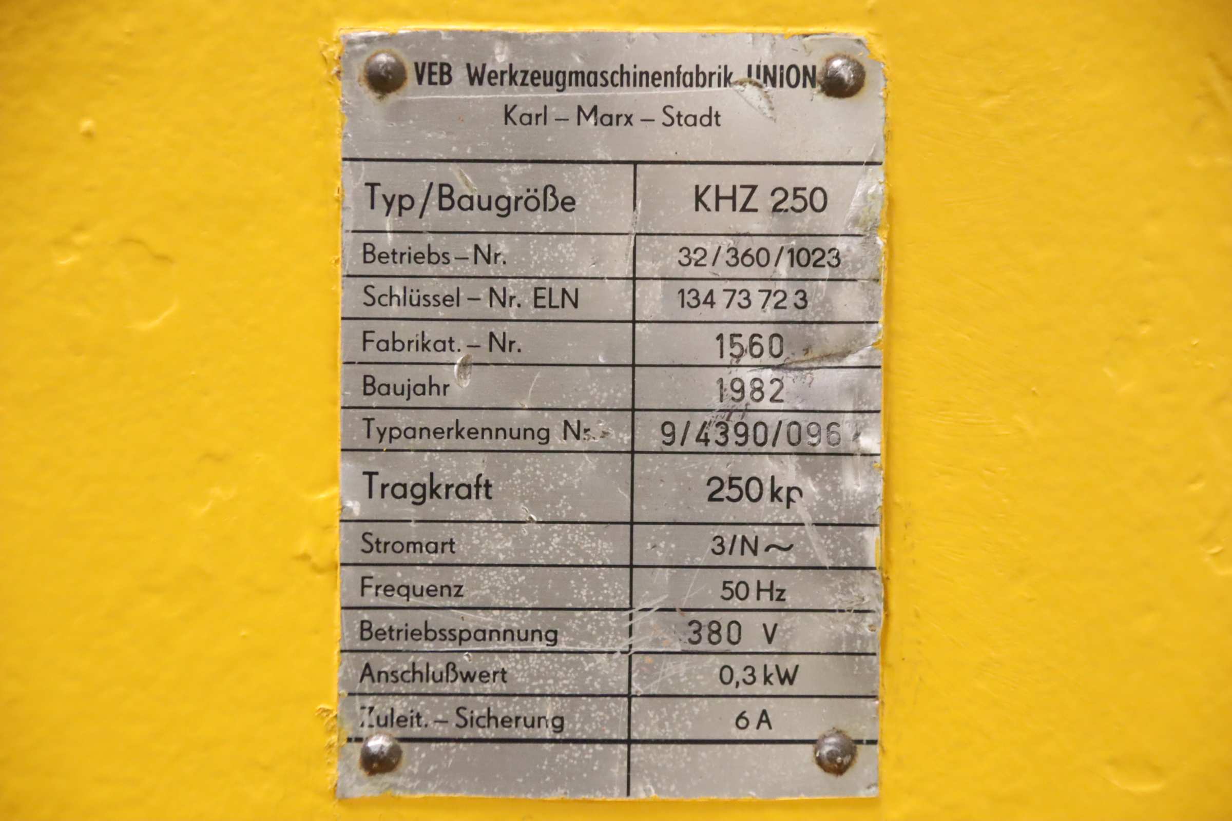 -Hersteller: VEB, Säulenschwenkkran Typ KHZ 250 Tragkraft 120 kg (Säulenschwenkkran ausgelegt 250 kg)