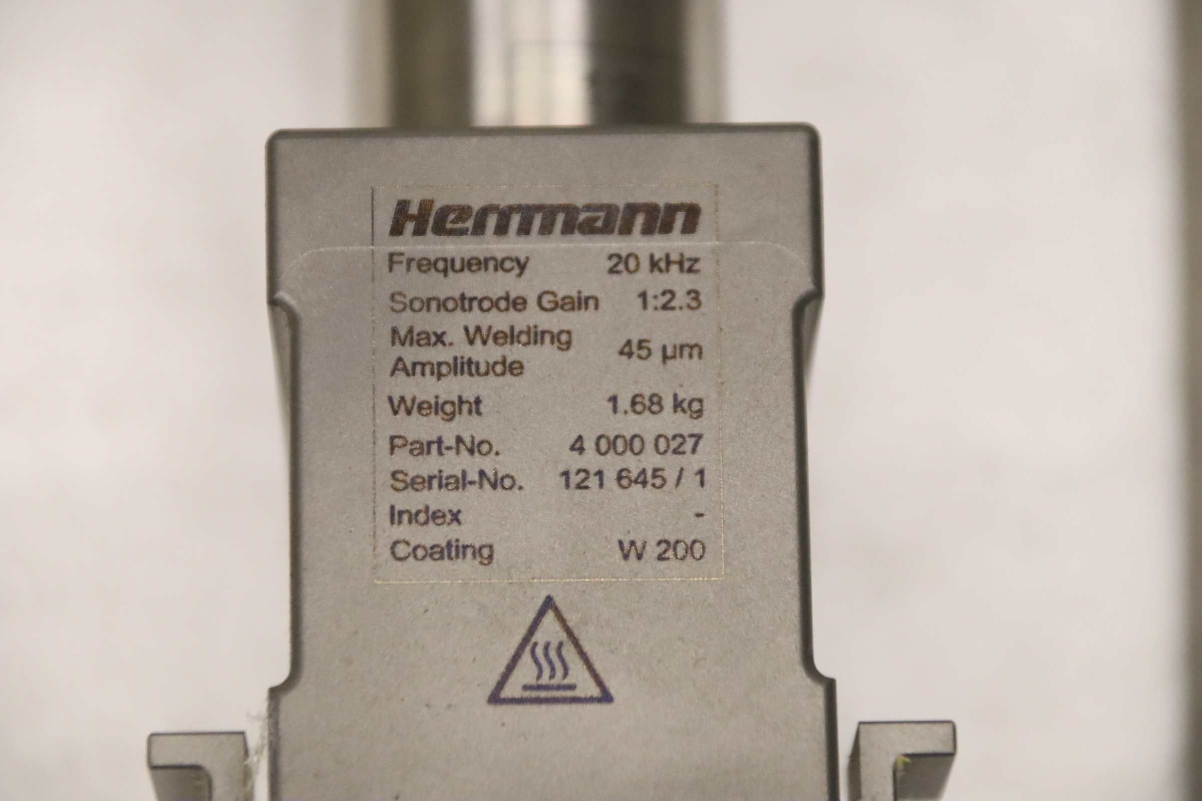 Ultraschall-Schweißwandler Ultraschall-Schwingeinheit von Herrmann – KHS20-IP50-L 400 061 4 000 027 im Zustand: gut und am Standort der Ware: 26215 Wiefelstede, DE