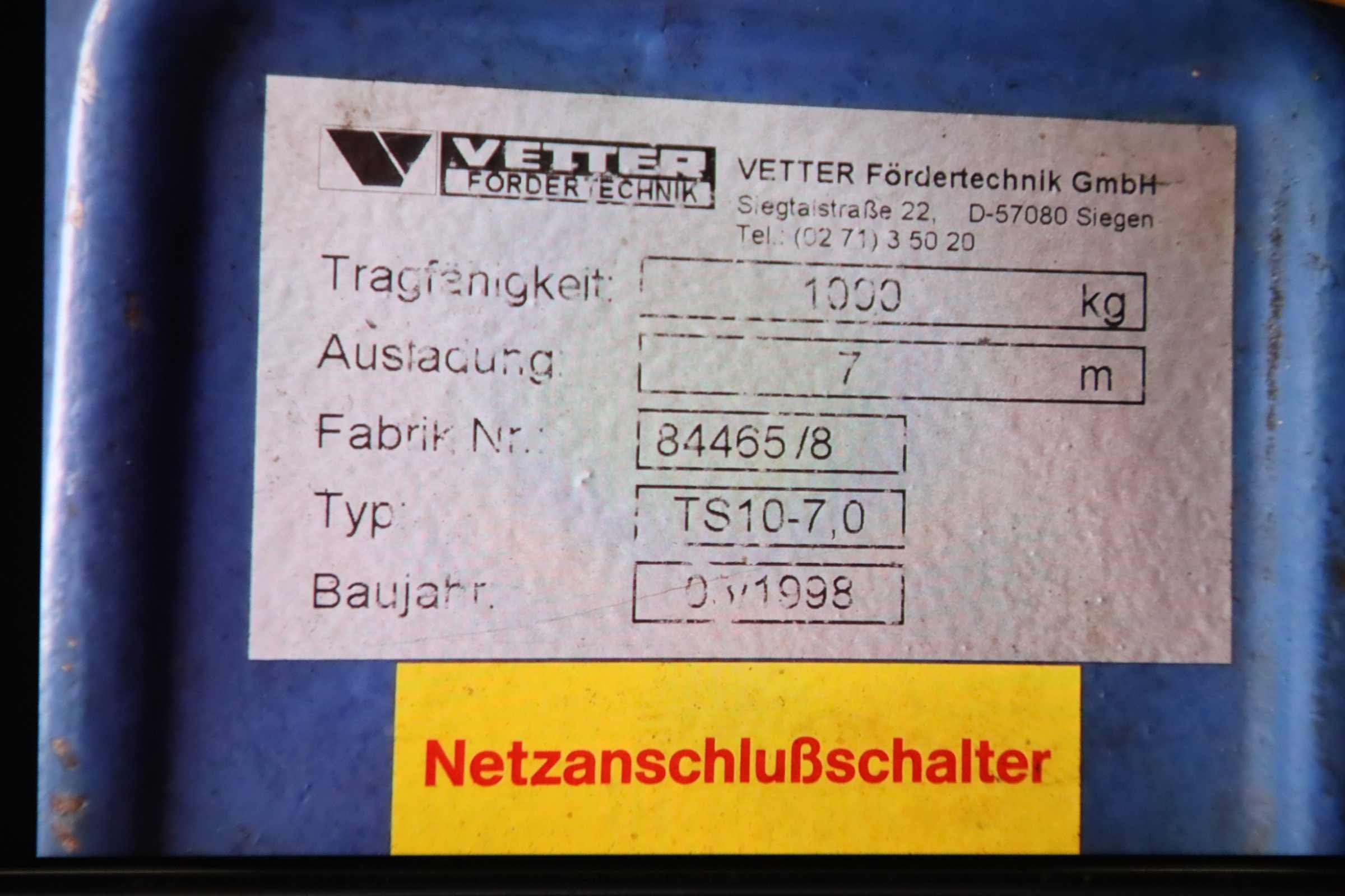 -mit Kettenzug: Vetter Typ SIE 6F Baujahr 1998