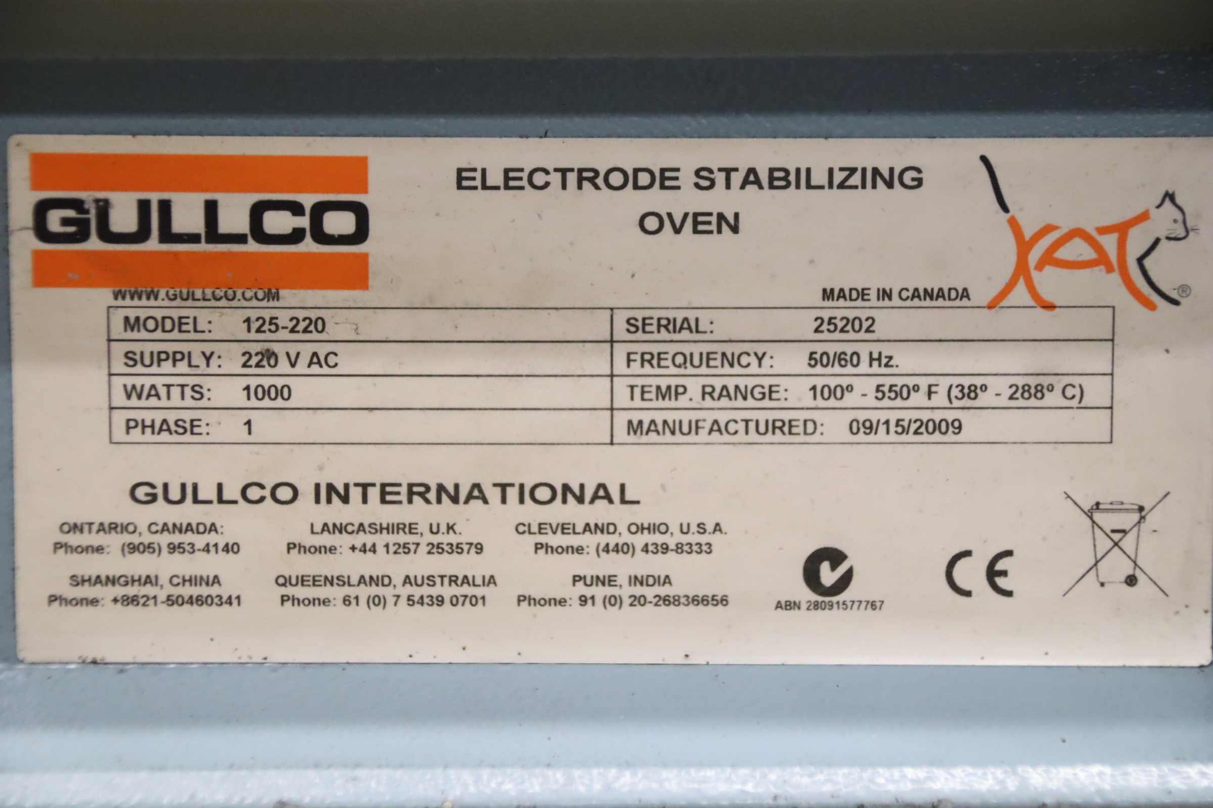 -Hersteller: Gullco, Trockenofen Elektrodentrockner Schweißpulvertrockner Typ 125-220