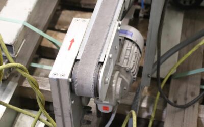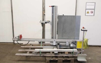 Materiallift, Auflegehilfe, Montagelift, Superlift Contractor, Hebelift, Förderband, Gurtförderband, Transportband, die Vorrichtung erlaubt das Auflegen von Profilen auf Maschinen wie Doppelgehrungssägen, Folieranlagen, Verstegmaschinen, Vorlegemagazine, Bearbeitungszentren usw. durch eine Person alleine