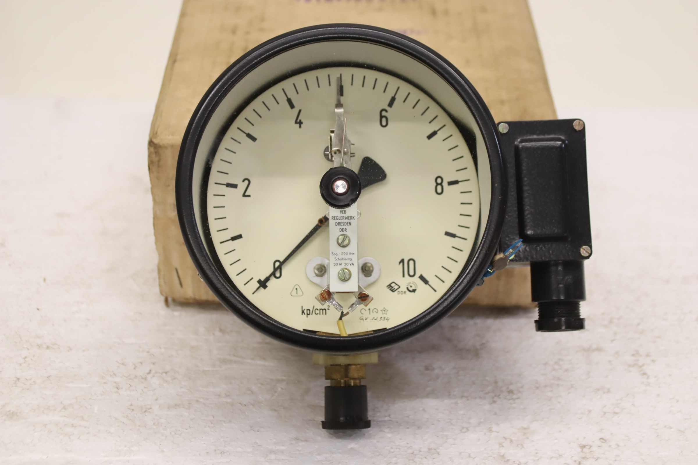 -Hersteller: VEB, Kontaktmanometer 0 – 0,1 bar / 0-10 kp/cm² unbenutzt Ovp